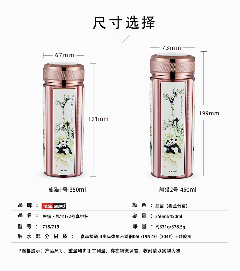 思宝官方旗舰店熊猫·思宝1/2号保温杯男女通用便携车载水杯