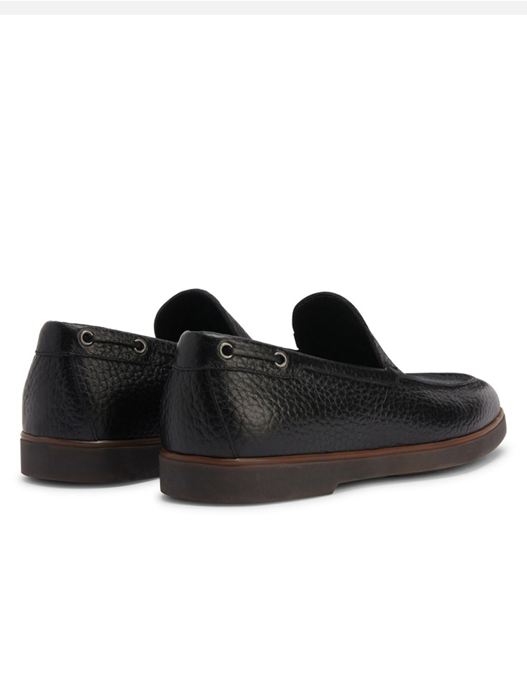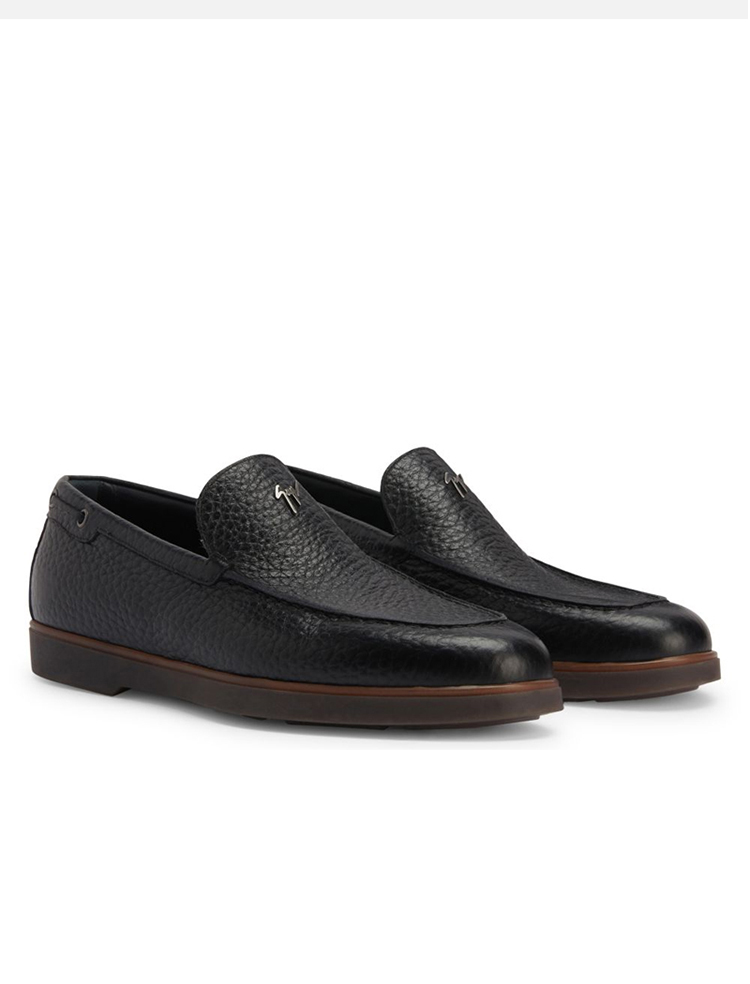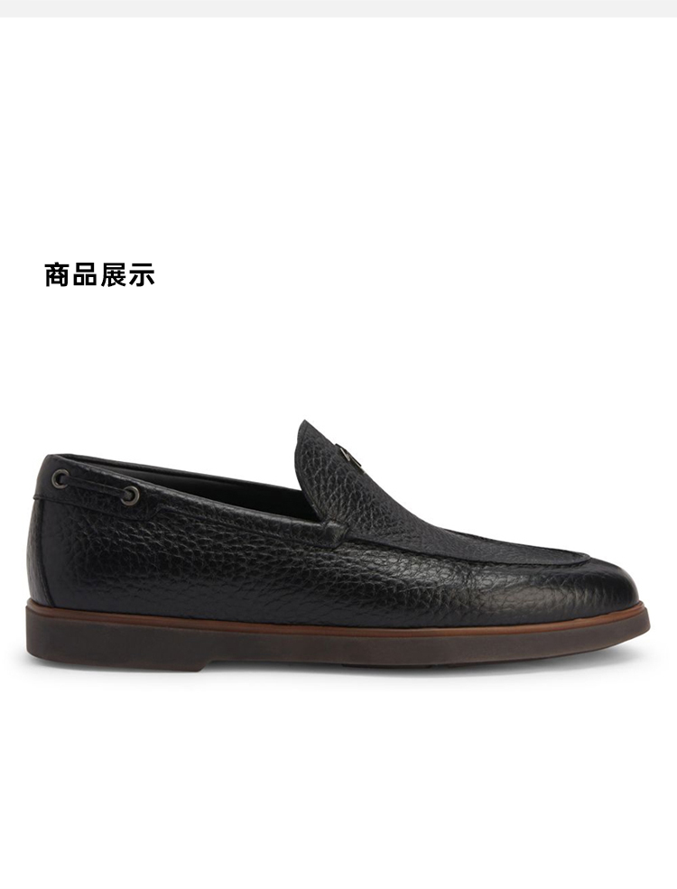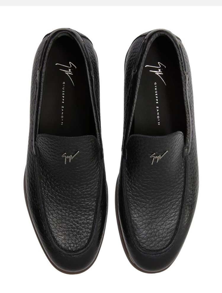 Giuseppe Zanotti 男士金属签名徽标螺纹皮革乐福鞋 黑色 EU40021010