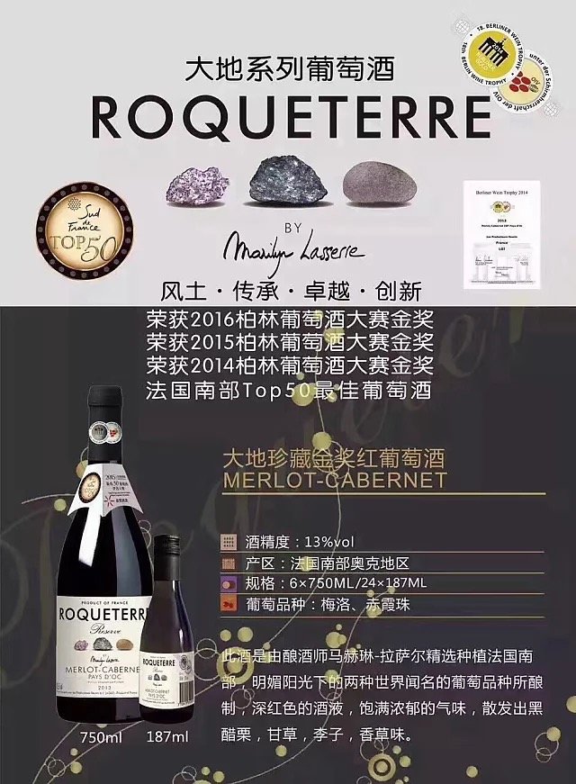 法国大地珍藏金奖红葡萄酒750ml/2瓶(送一只醒酒器+一对杯子)