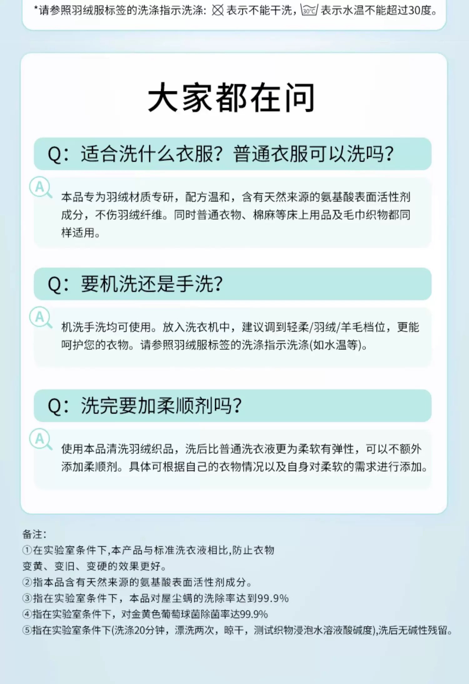 小白白羽绒服洗衣液500g*2瓶+赠同款80g*2瓶