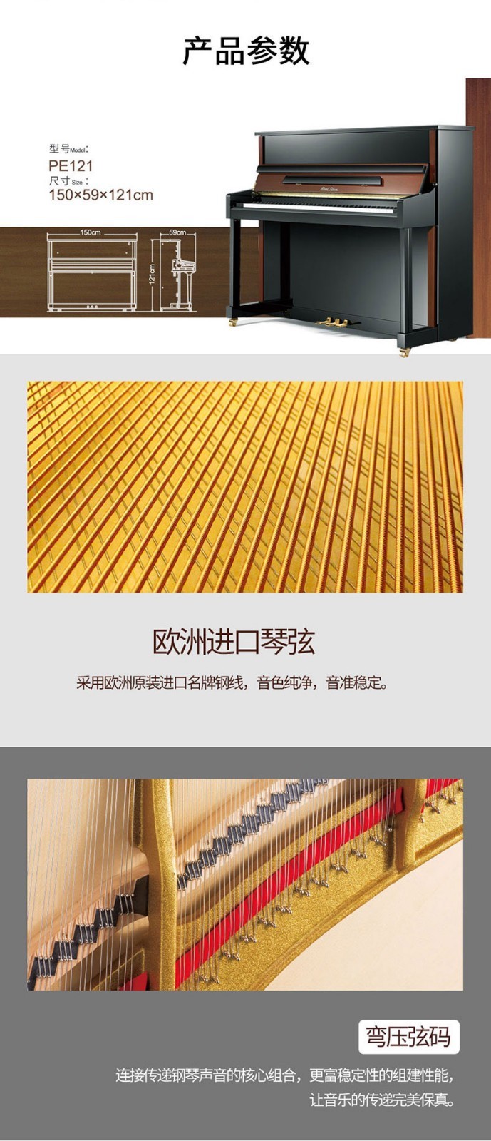 珠江钢琴(PEARLRIVER) 立式钢琴全新专业家用钢琴PE121