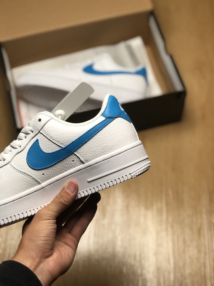 公司级硬质优质荔枝皮,内置全掌air sole气垫。耐克 Nike Air Force 1 Low 白蓝 空军一号低帮百搭休闲运动板鞋