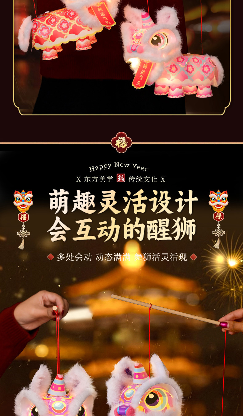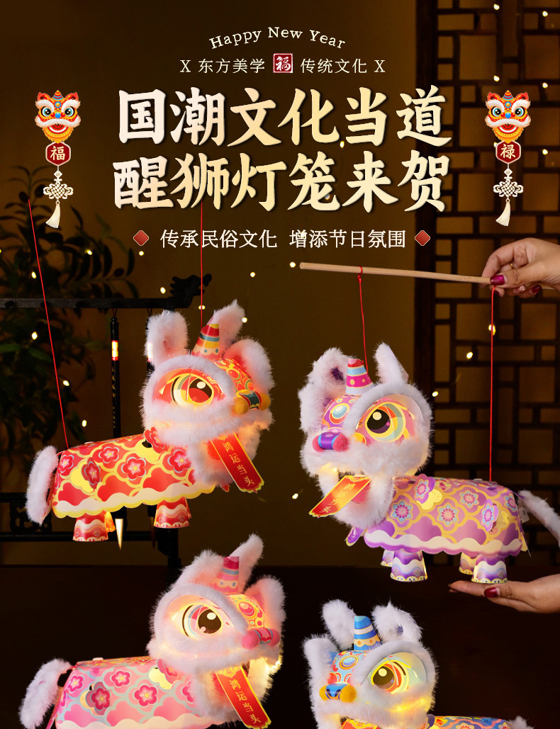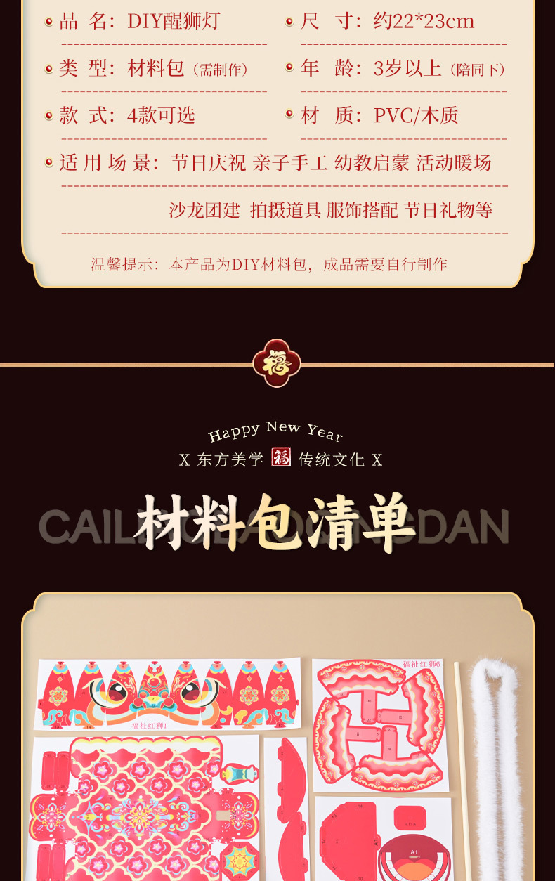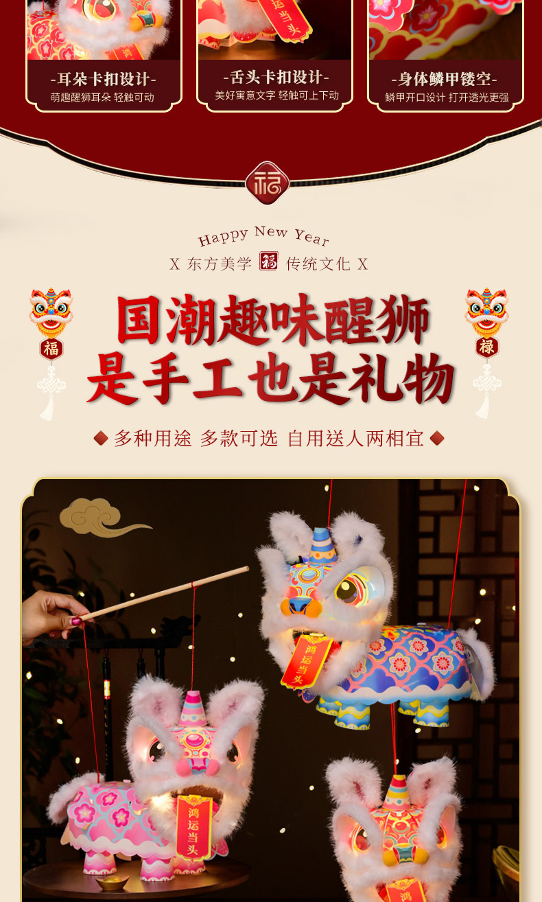 【29.9元2个!非遗手工醒狮灯笼】2026 马年醒狮灯笼DIY材料包 儿童手提花灯新年元宵礼物