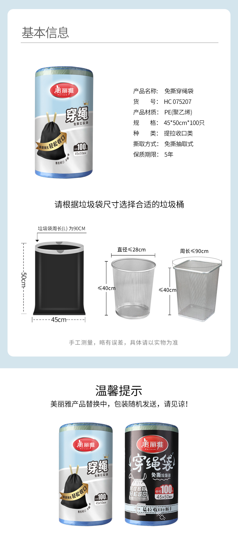 美丽雅免撕穿绳袋垃圾袋