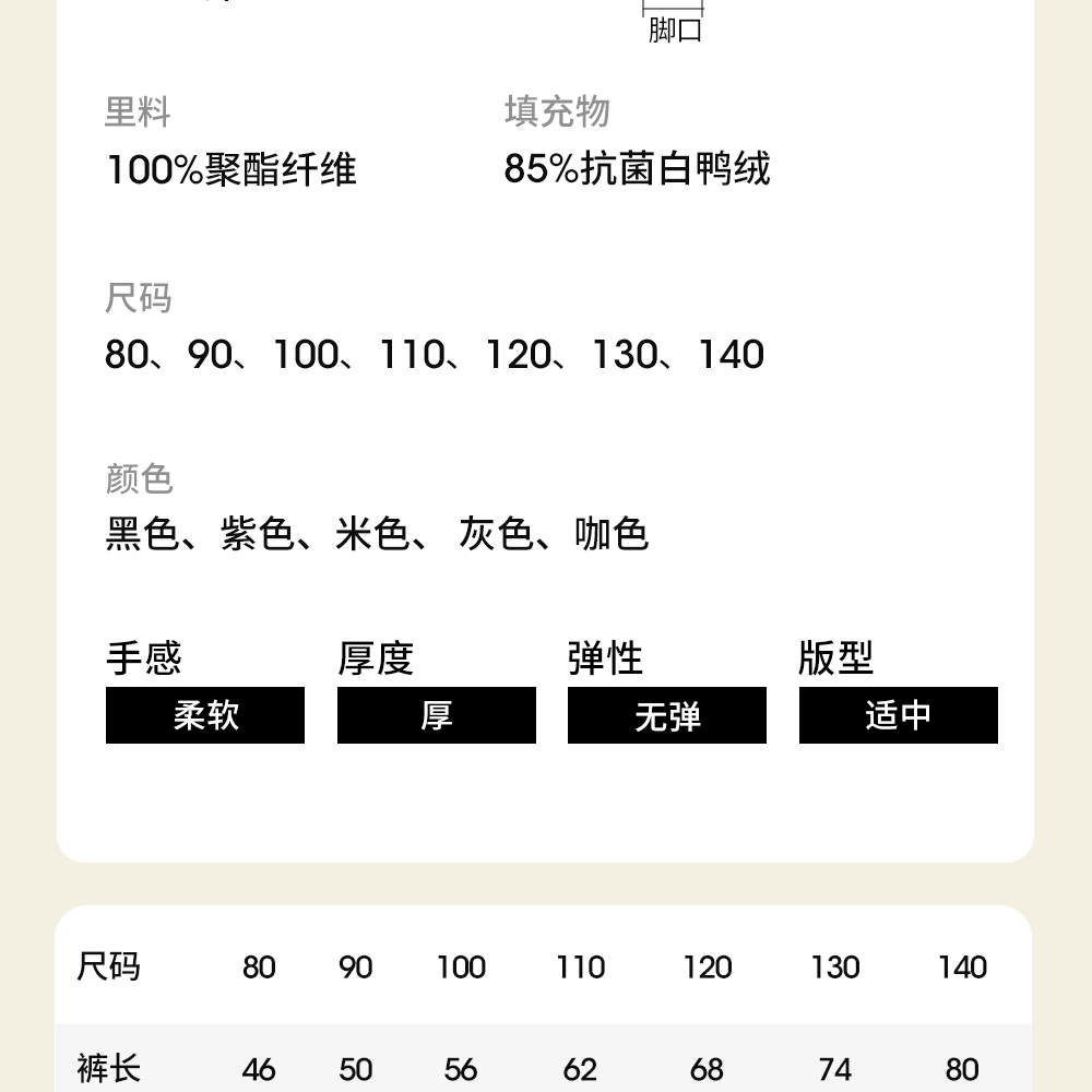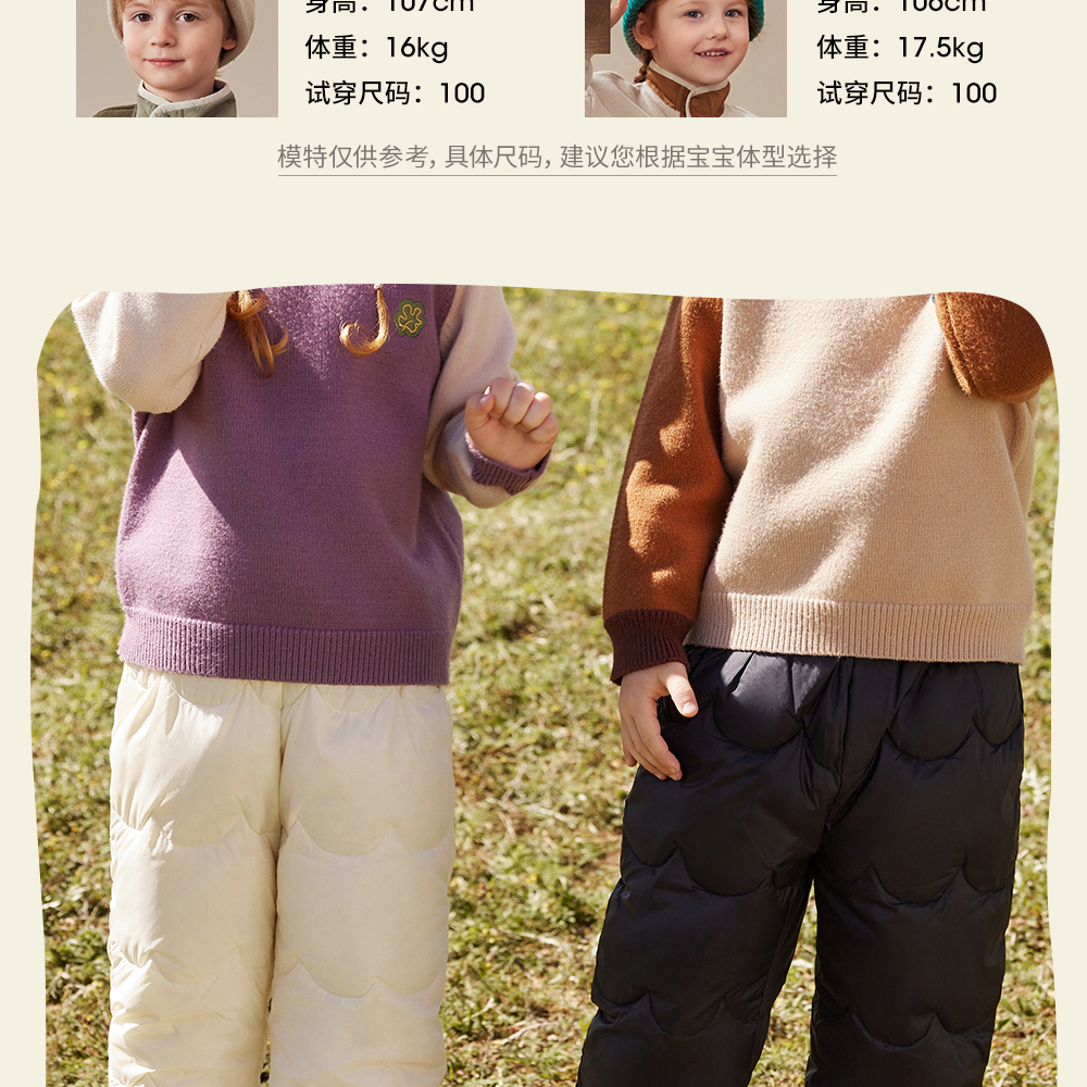 【贝肽斯】儿童三防羽绒裤保暖男女童宝宝2025新款秋冬外穿白鸭绒防寒