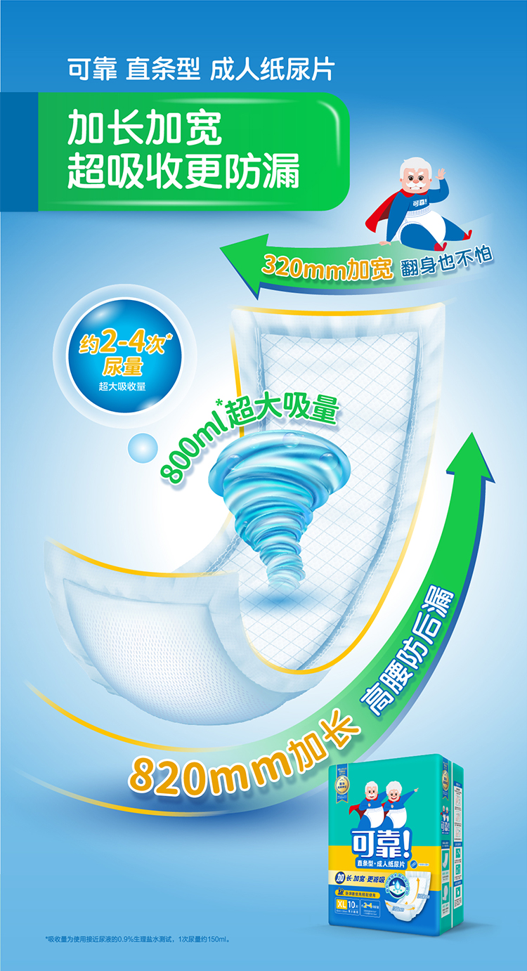 可靠COCO成人纸尿片820*320mm男女老人尿片尿不湿单包10片