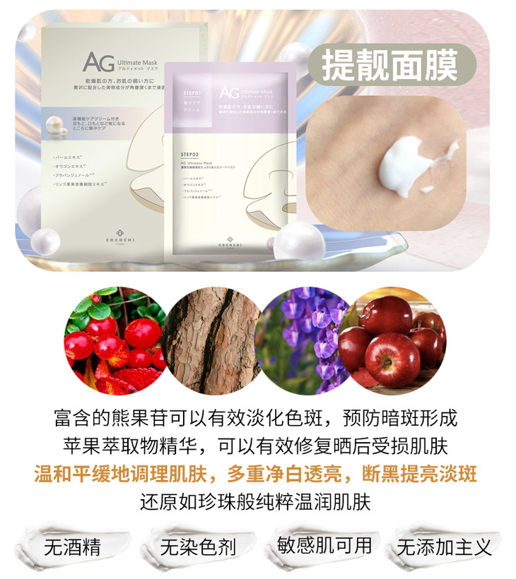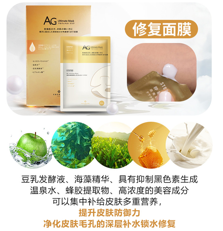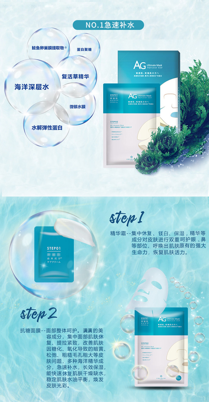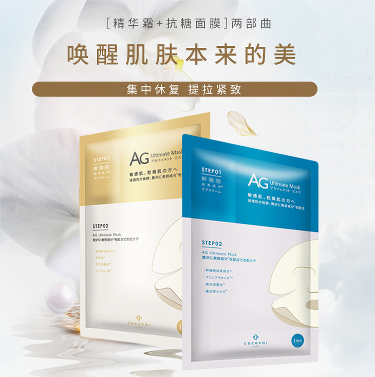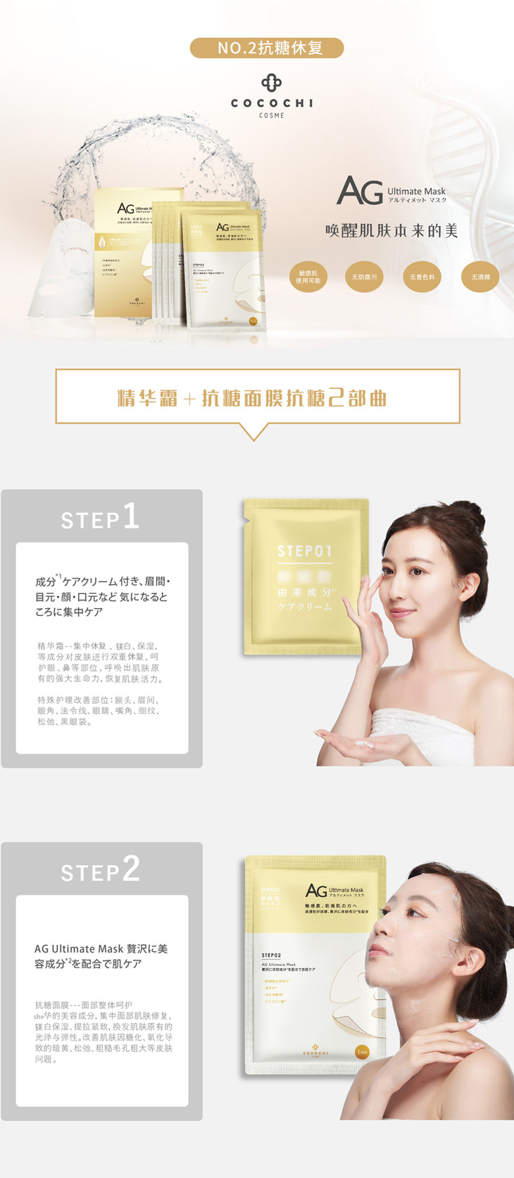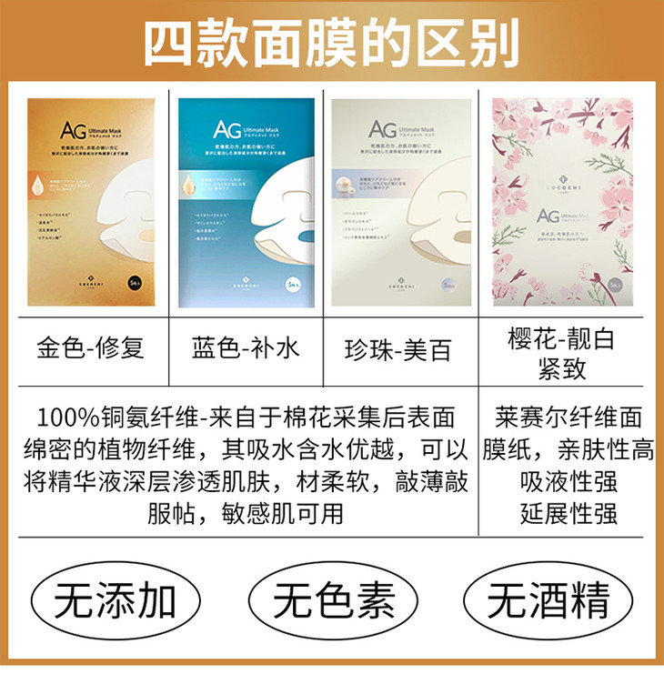 【跨境】CocochiCosme/可可琪可思曼AG抗糖面膜 蓝色/金色/白色 5片/盒(本土版本)