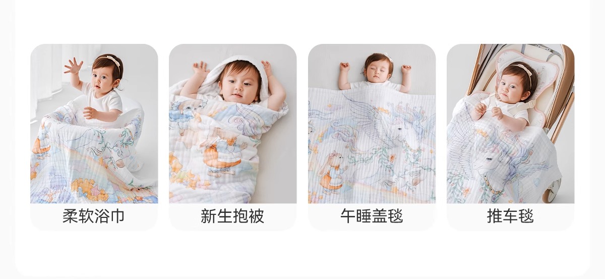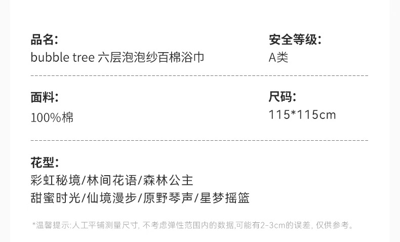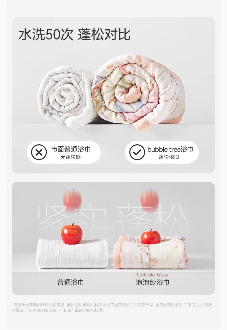 【云优选】BUBBLE TREE婴儿纯棉纱布浴巾新生儿包巾盖毯宝宝洗澡被子春夏秋冬毯子