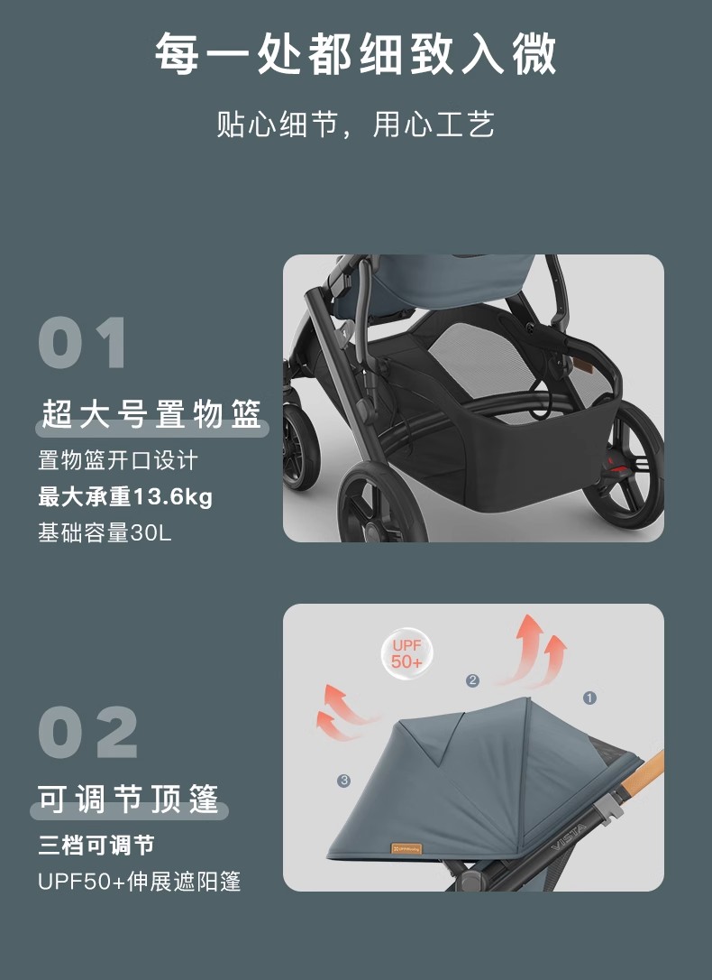 美国UPPAbaby Vista V3高景观婴儿车超高景观可坐躺折叠双向多功能推车0-4岁