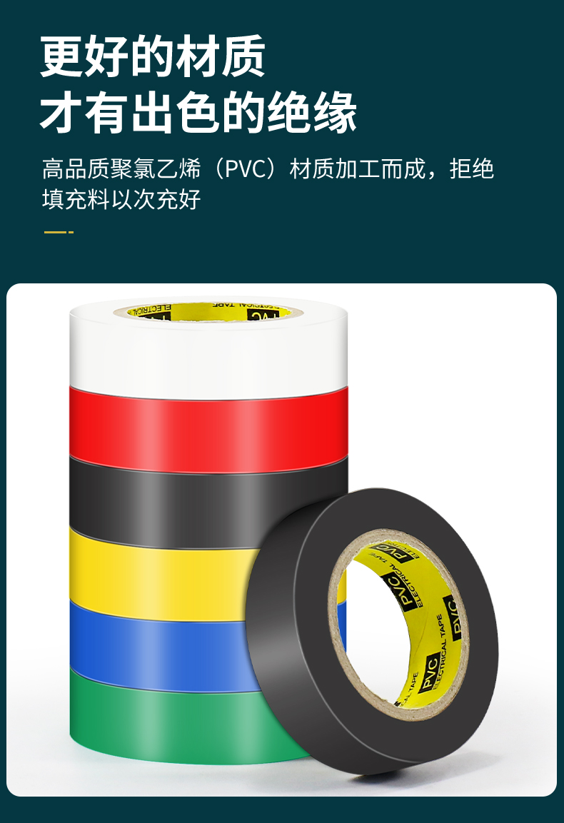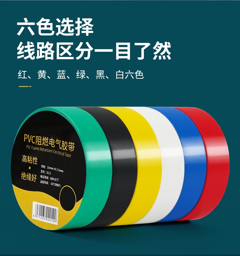 电工胶布绝缘胶布阻燃电线胶布黑色白色耐高温耐磨电工胶带高粘性PVC防水胶布