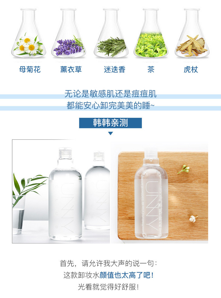 ▲韩国 简约 UNNY卸妆水500m l温和无刺激 全脸可用