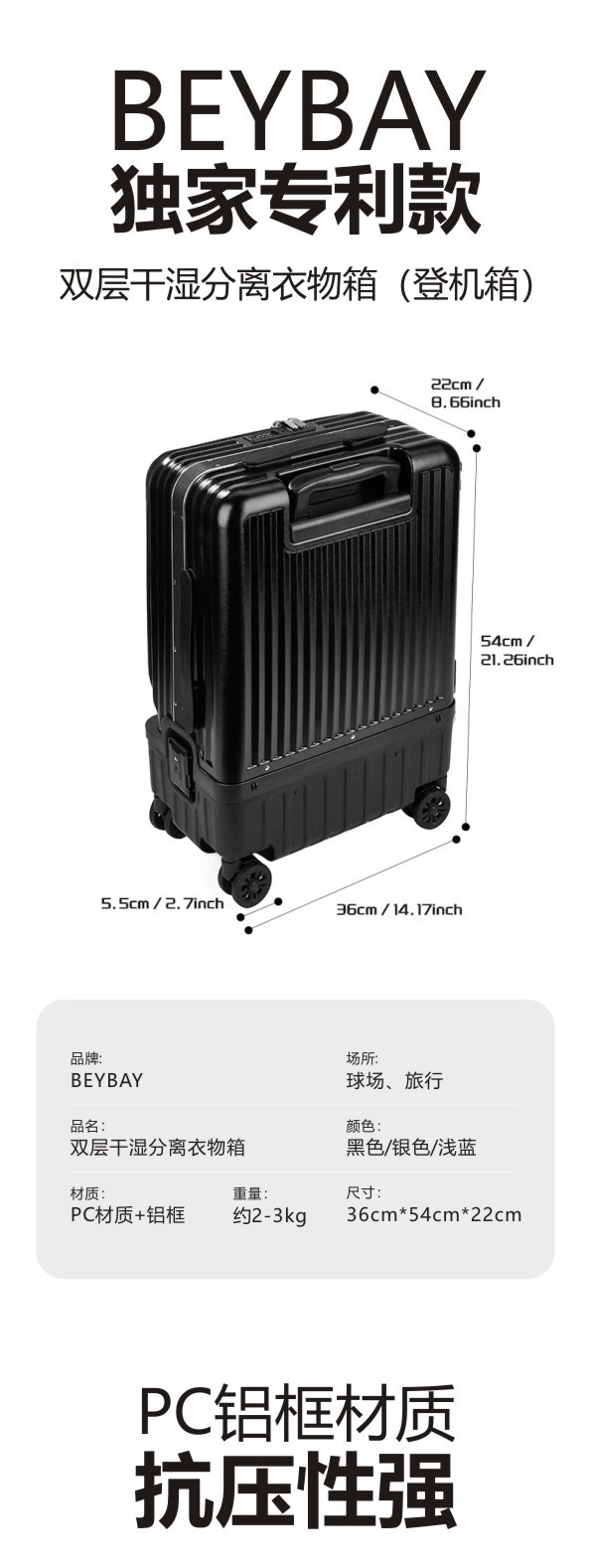 BEYBAY双层干湿分离高尔夫衣物箱 旅行登机箱