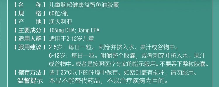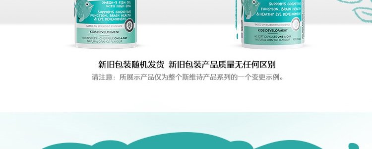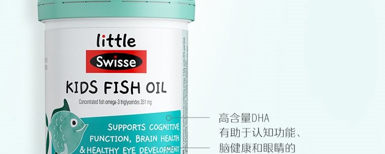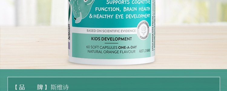【保税】澳洲 swisse 儿童DHA鱼油胶囊 60粒 深海纯鱼油 护眼补脑 适合2-12岁儿童