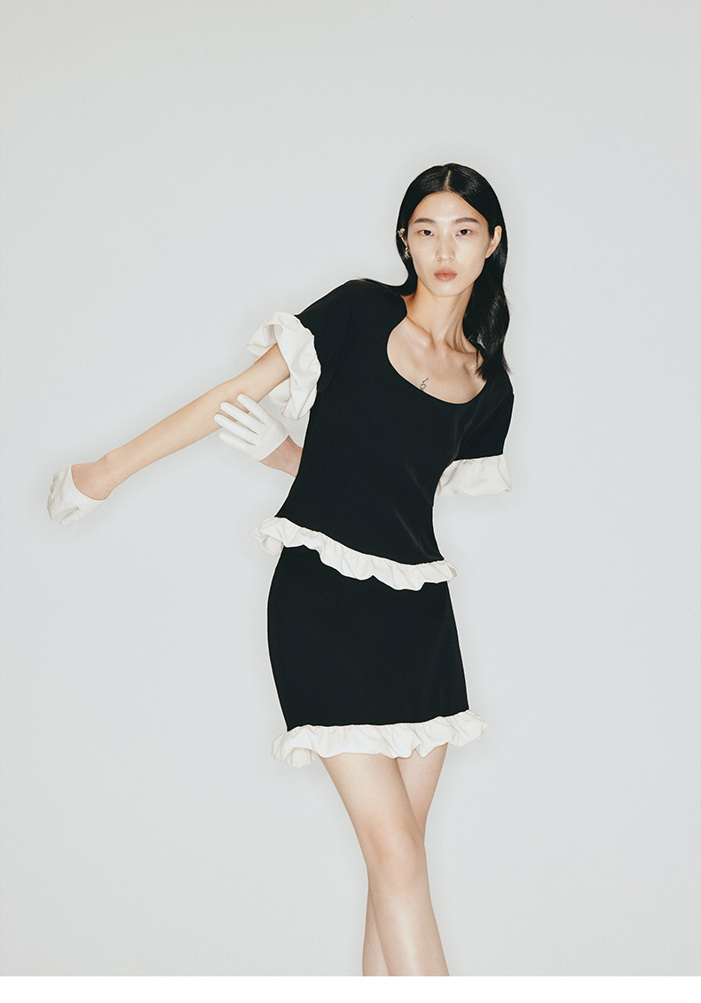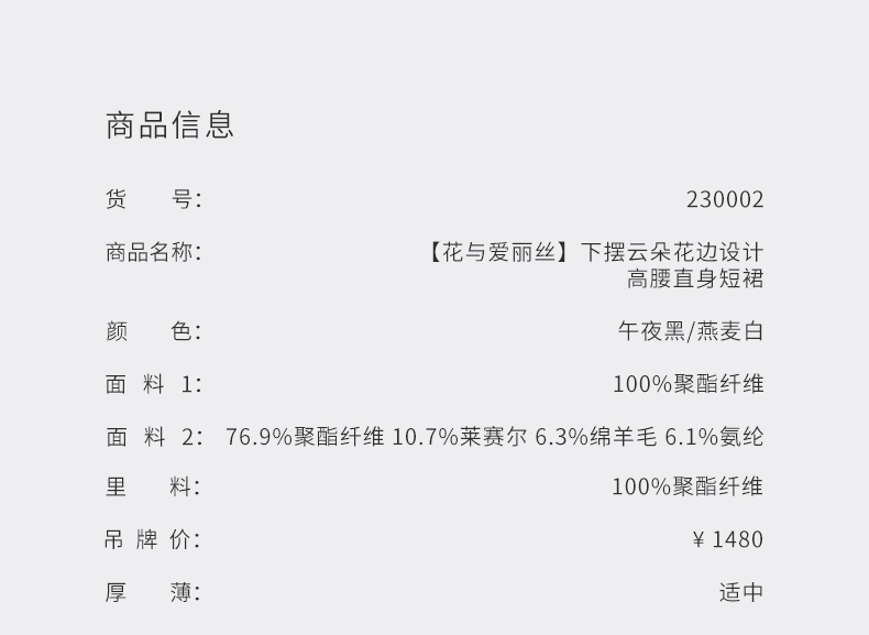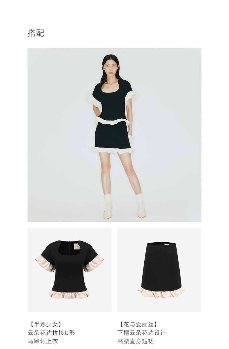 【花与爱丽丝】下摆云朵花边设计高腰直身短裙/230002