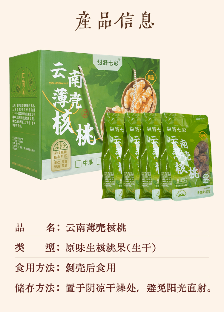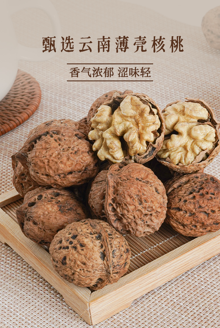 【 甜野七彩云南薄壳核桃果】 甄选云南高山大树深纹核桃32mm大果 壳薄易取仁 苦涩味轻入口香甜