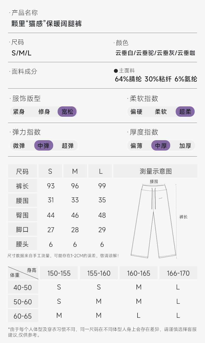 【颗里专场】真修饰腿型,颗里“猫感”保暖阔腿裤 有垂感 职场/带娃/约会一裤搞定