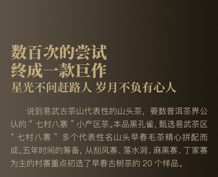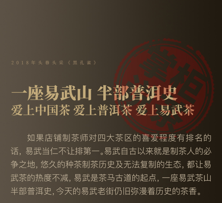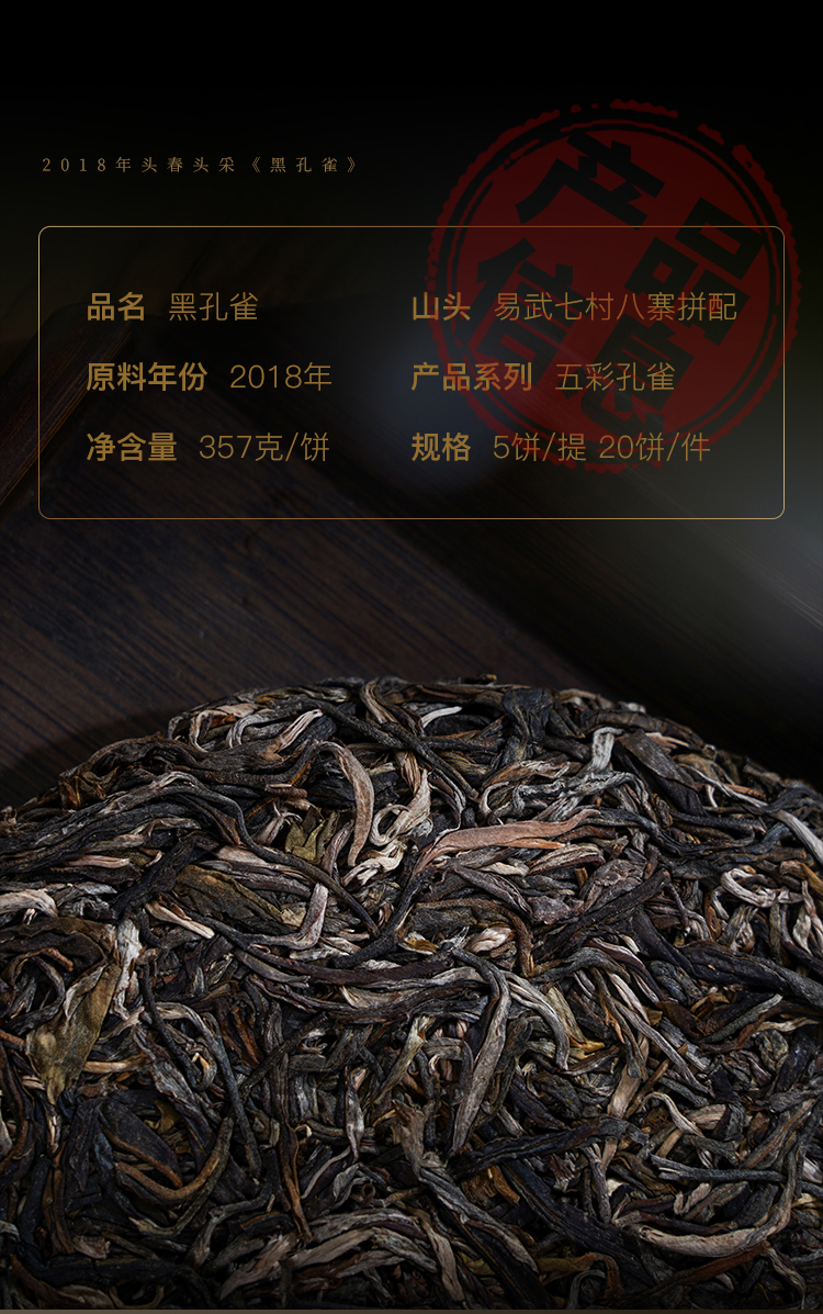 10月21日中午12点【两人团】【黑孔雀】【单饼装】2018年云南易武拼配普洱生茶集齐七村八寨 还原大易武滋味 五年陈化 一飞冲天 内含357g茶