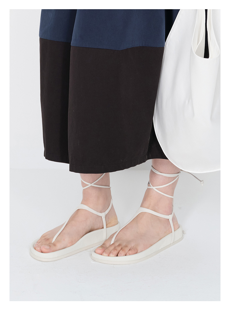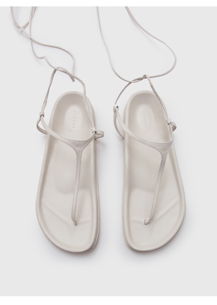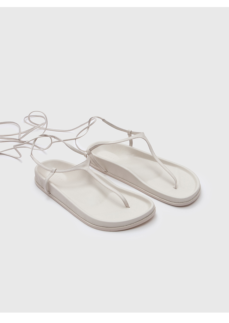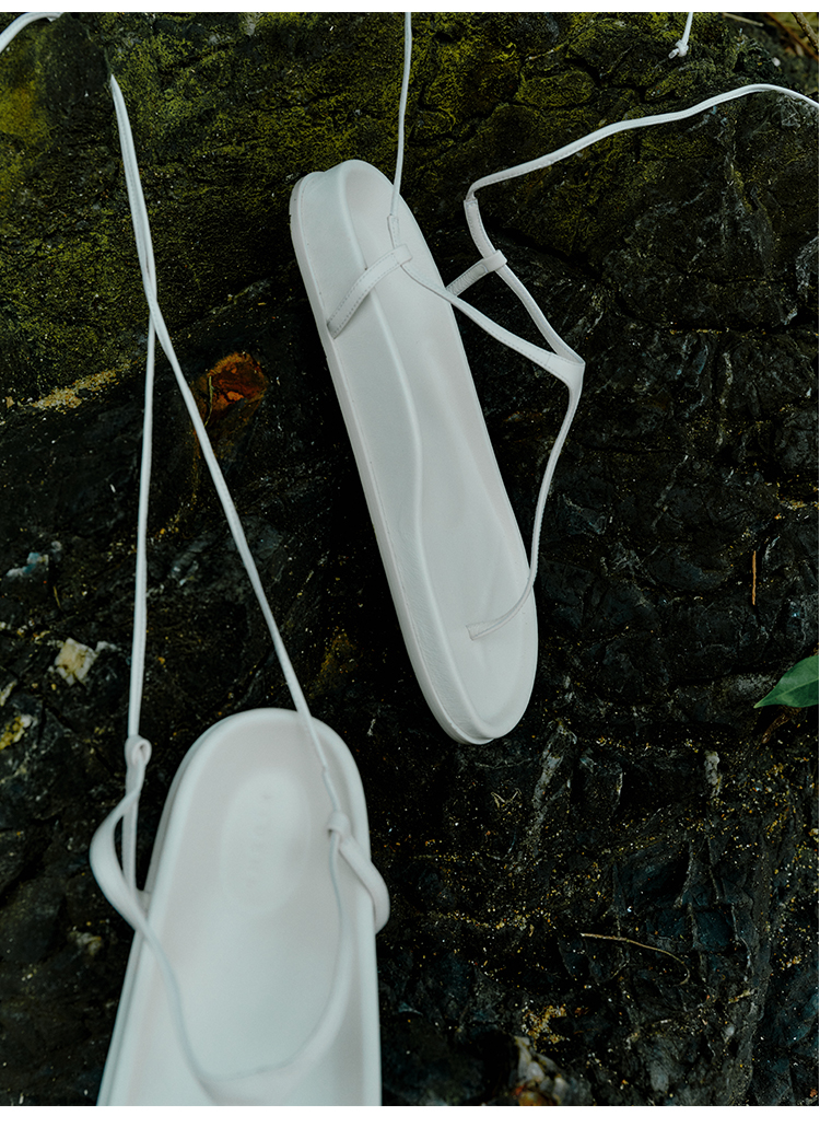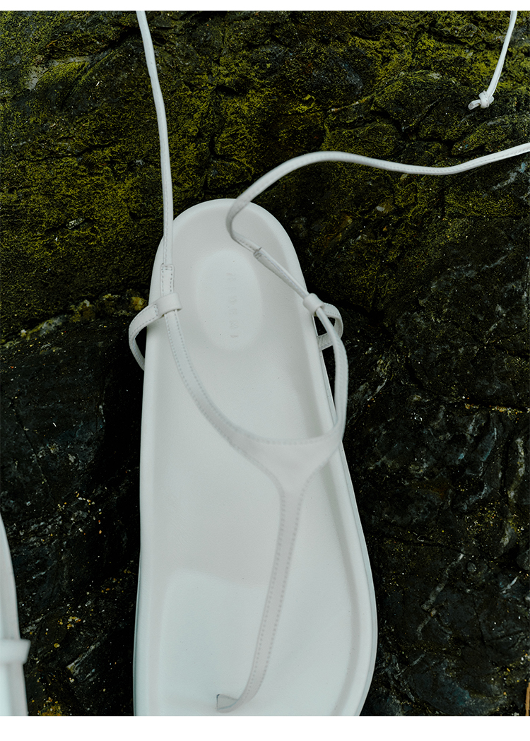 HIDEMI 极简夹脚人字绑带式厚底白色凉鞋