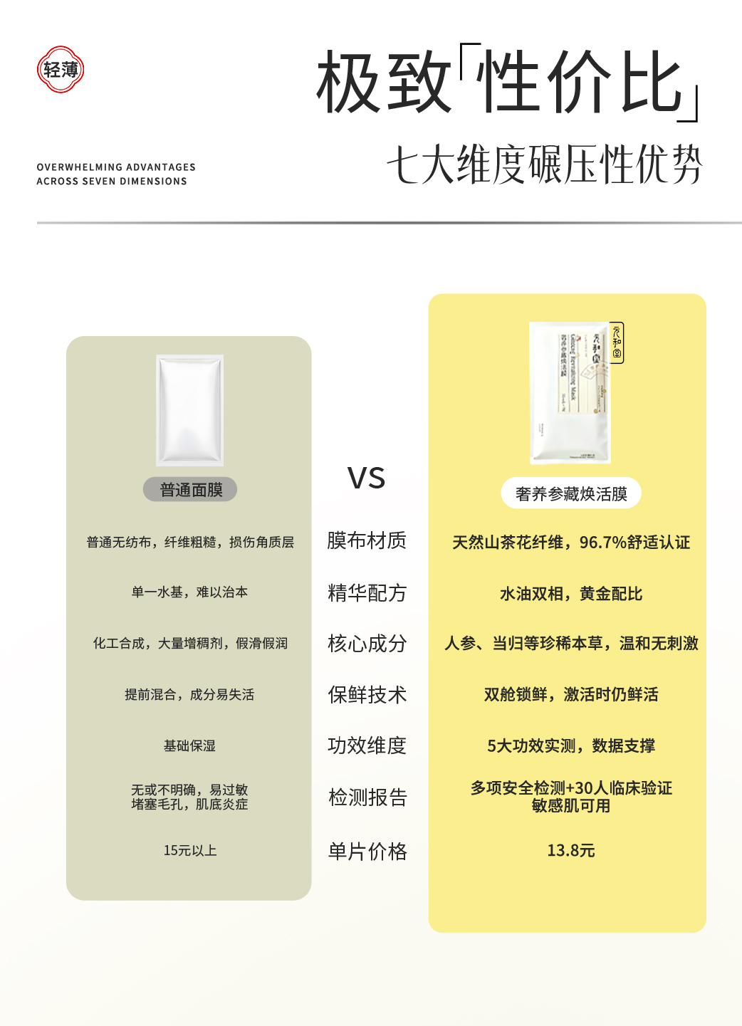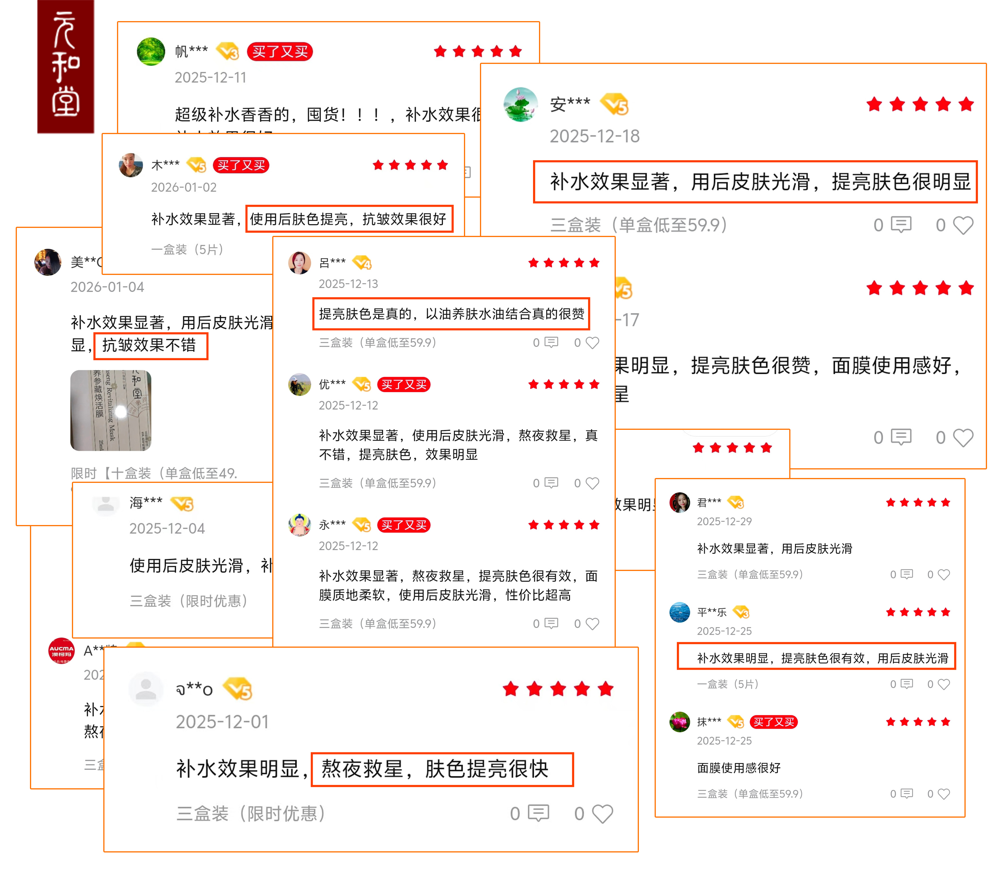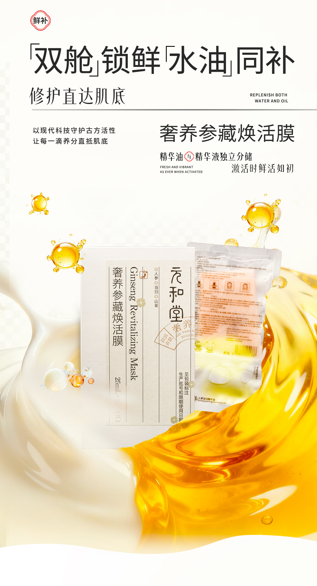 「奢养参藏焕活面膜」5片/盒 | 面膜+鼻膜人参当归银耳多糖透明质酸专利补水 | 紧致抗皱舒缓控油保湿温和无刺激 | 元和好物迷罗亲研