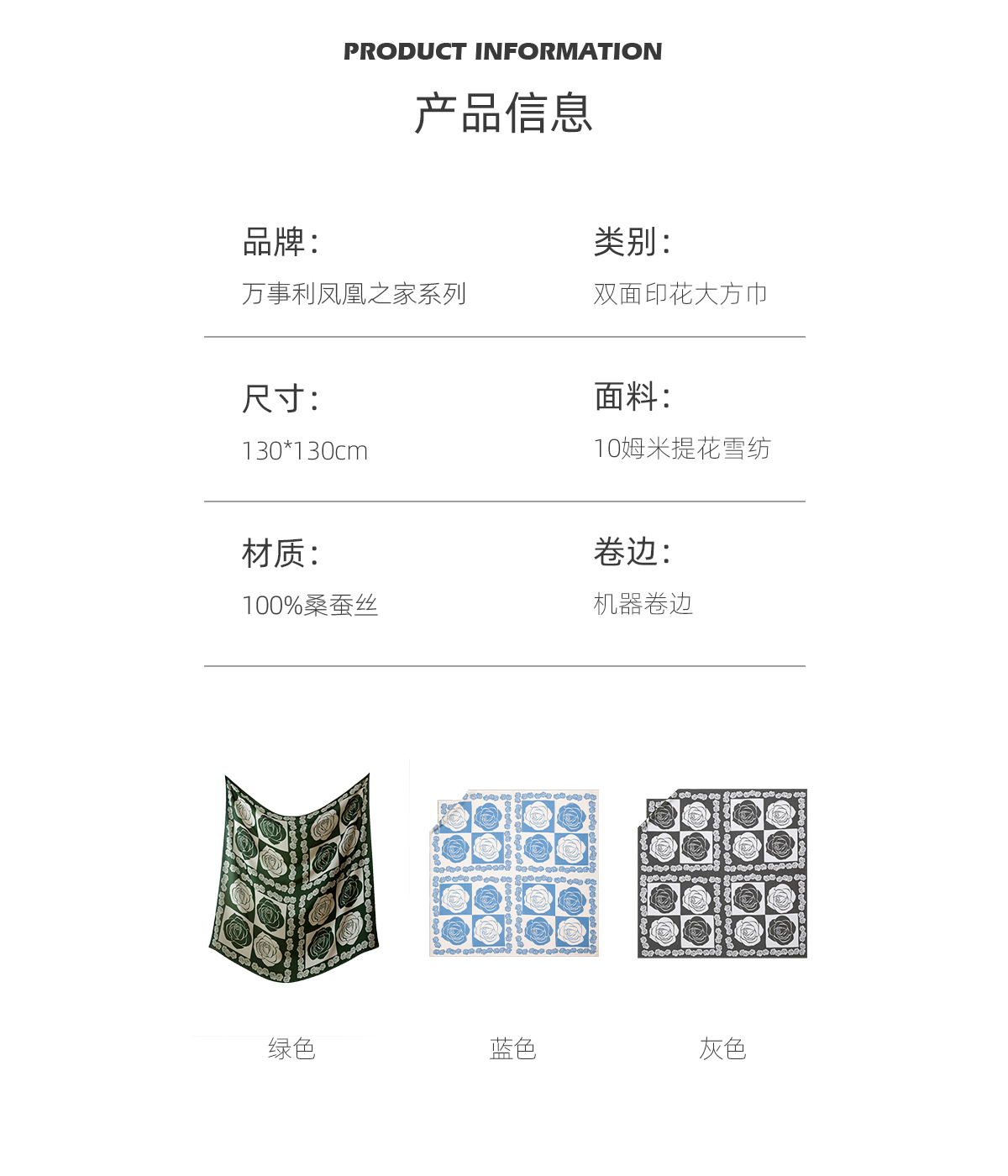 凤凰之家“玫瑰人生”130厘米超大方巾