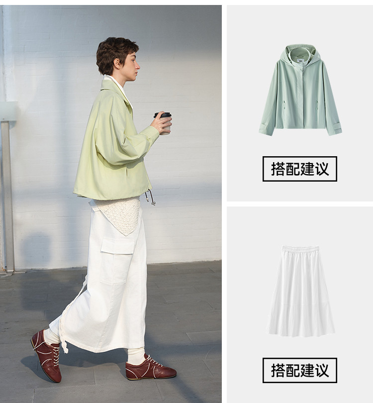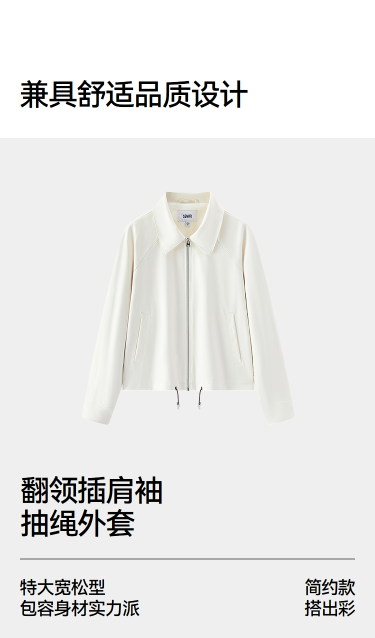 商场同款|森马外套女春oversize插肩袖翻领抽绳2026新款简约夹克