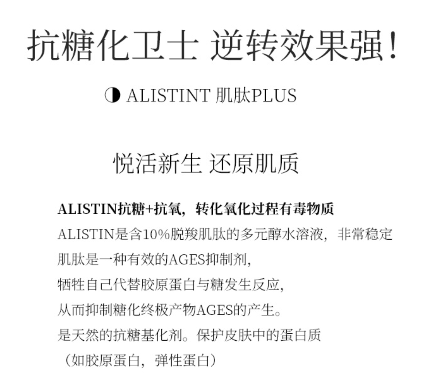 抗衰老、抗糖化、抗氧化。