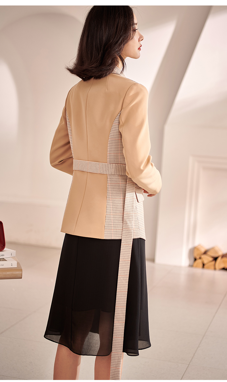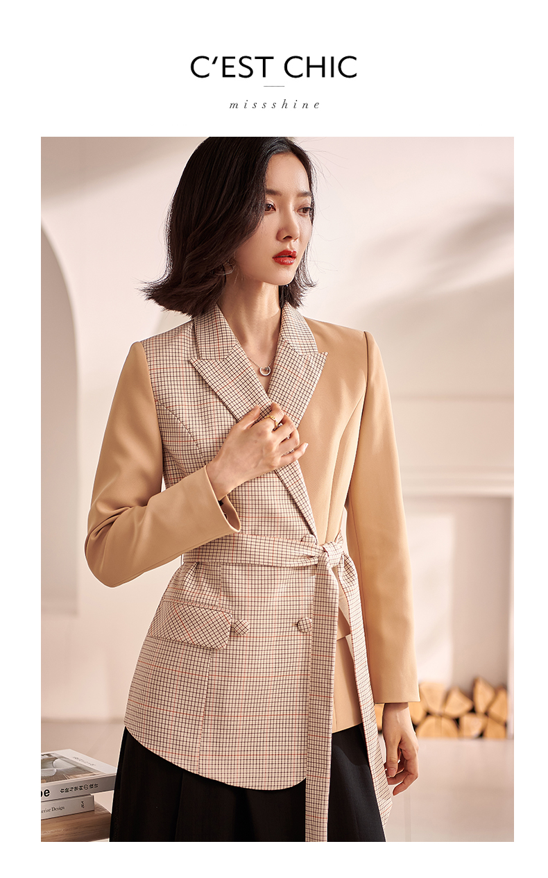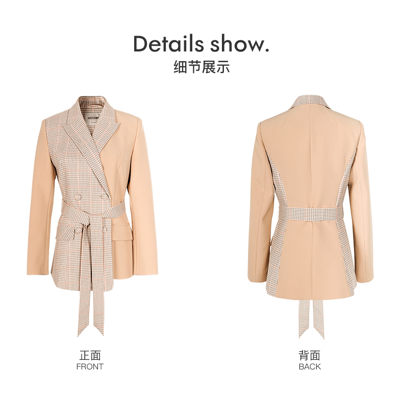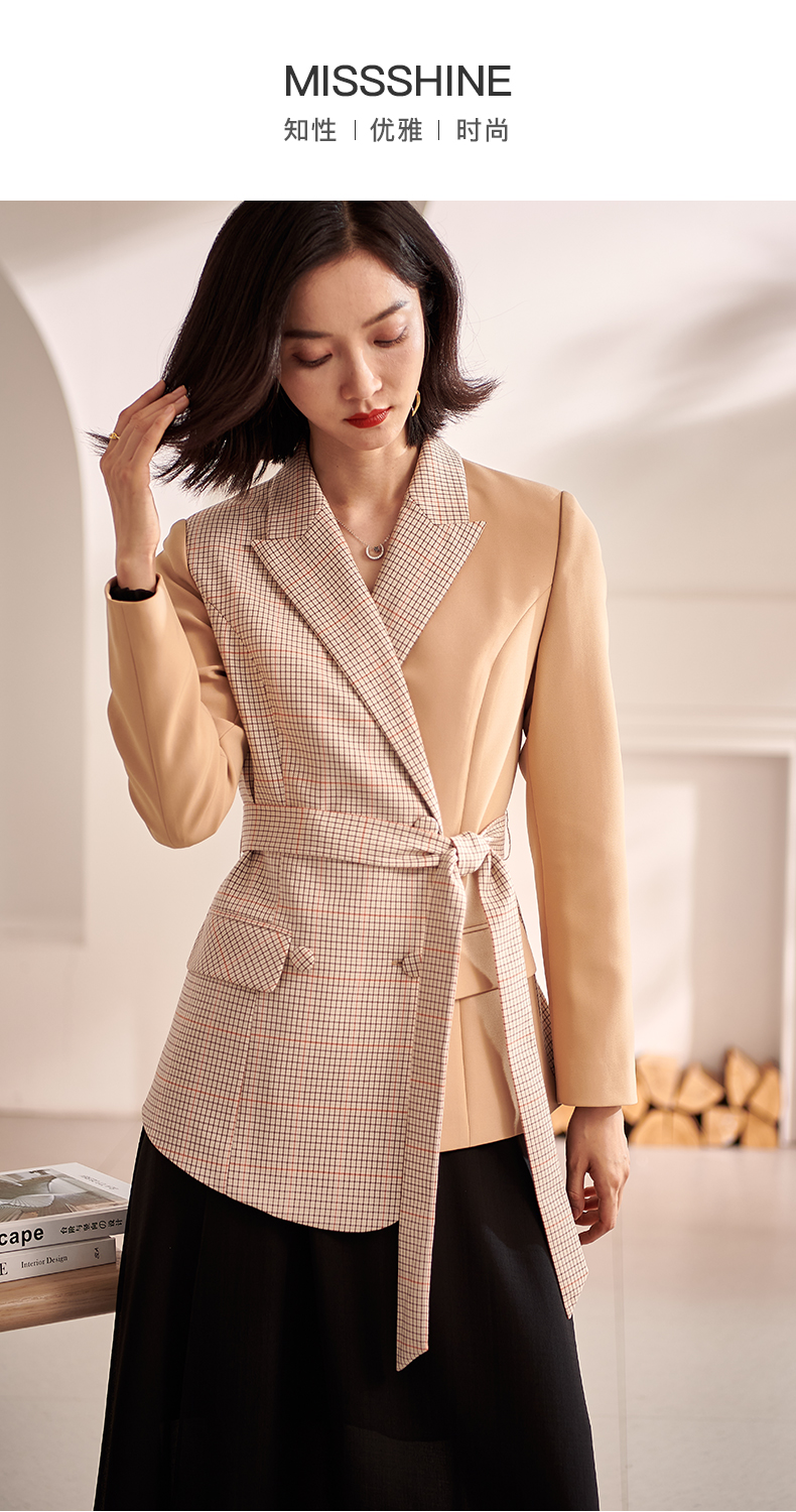 米思阳2026春季新品时尚拼接气质显瘦收腰女式小西服