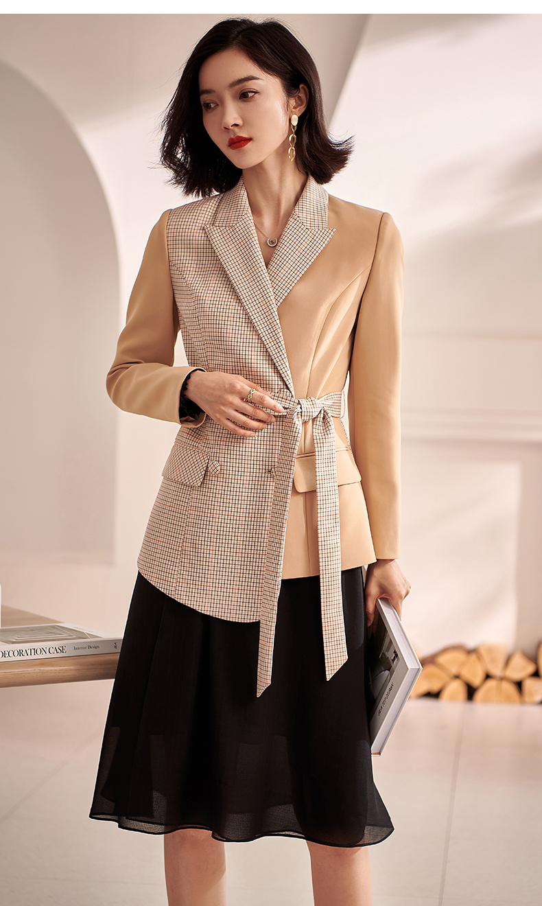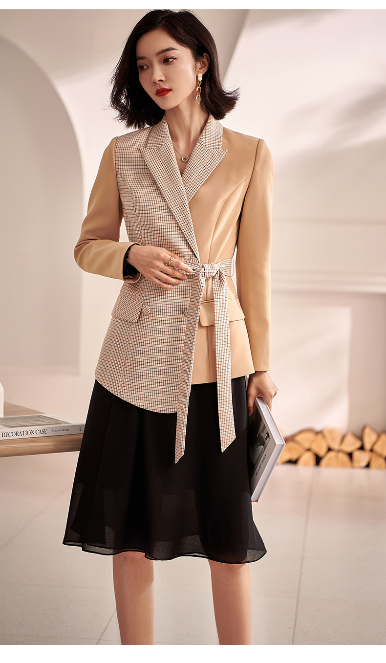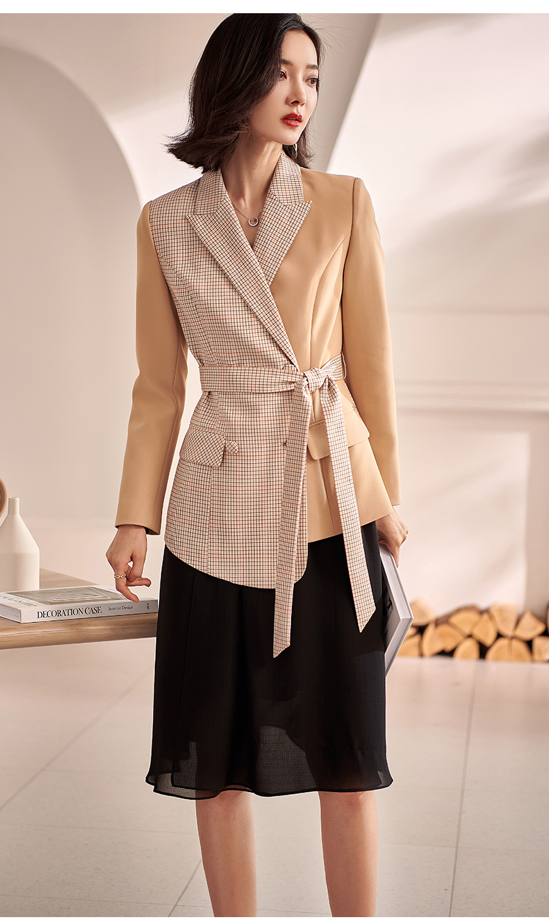 米思阳2026春季新品时尚拼接气质显瘦收腰女式小西服