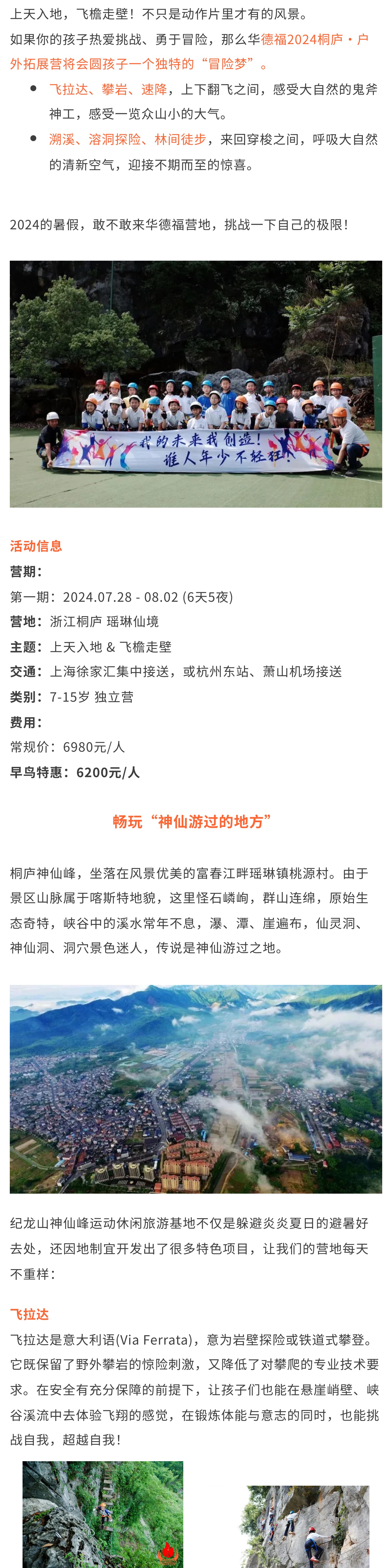 【上天入地&飞檐走壁】浙江桐庐独立营6日游