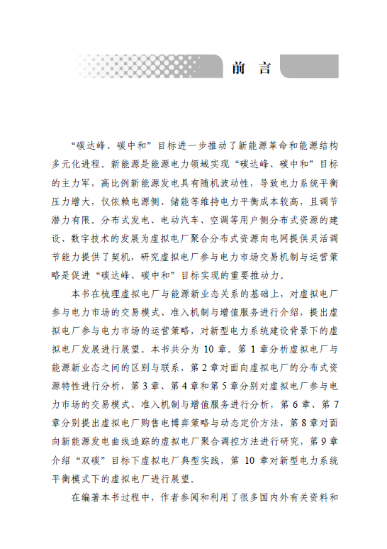 书名:虚拟电厂交易机制与运营策略