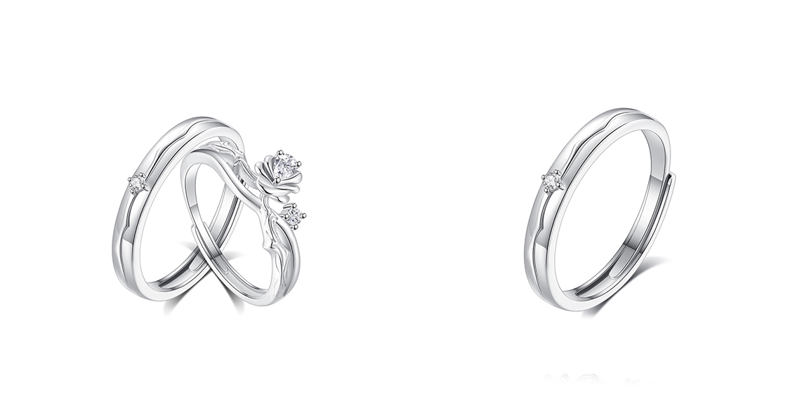 KADER卡蒂罗 公主与骑士情侣戒指 925银浪漫玫瑰精致立体开口可调节一对 约会恋爱穿搭配饰 女友礼盒520