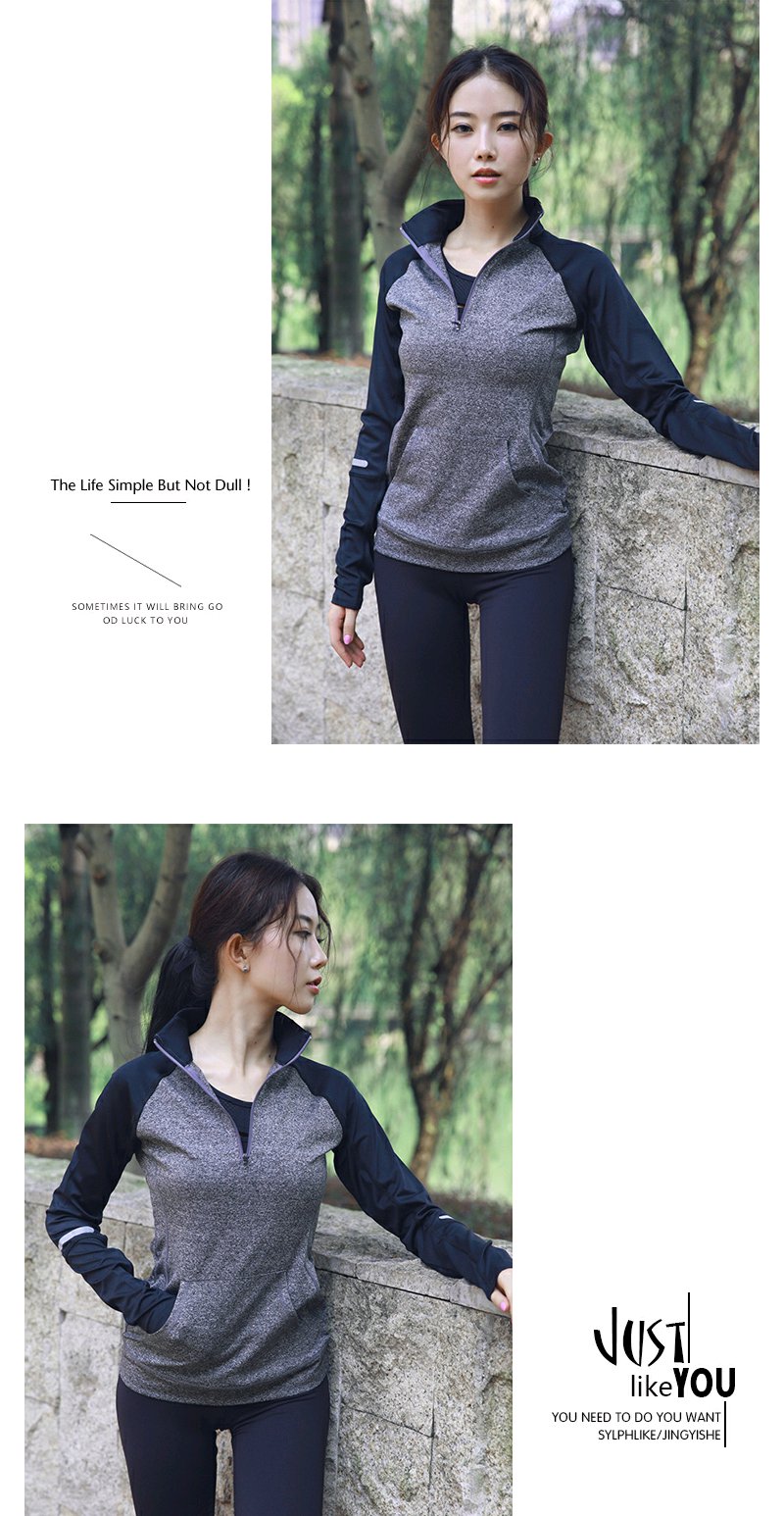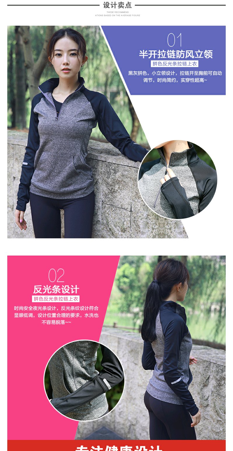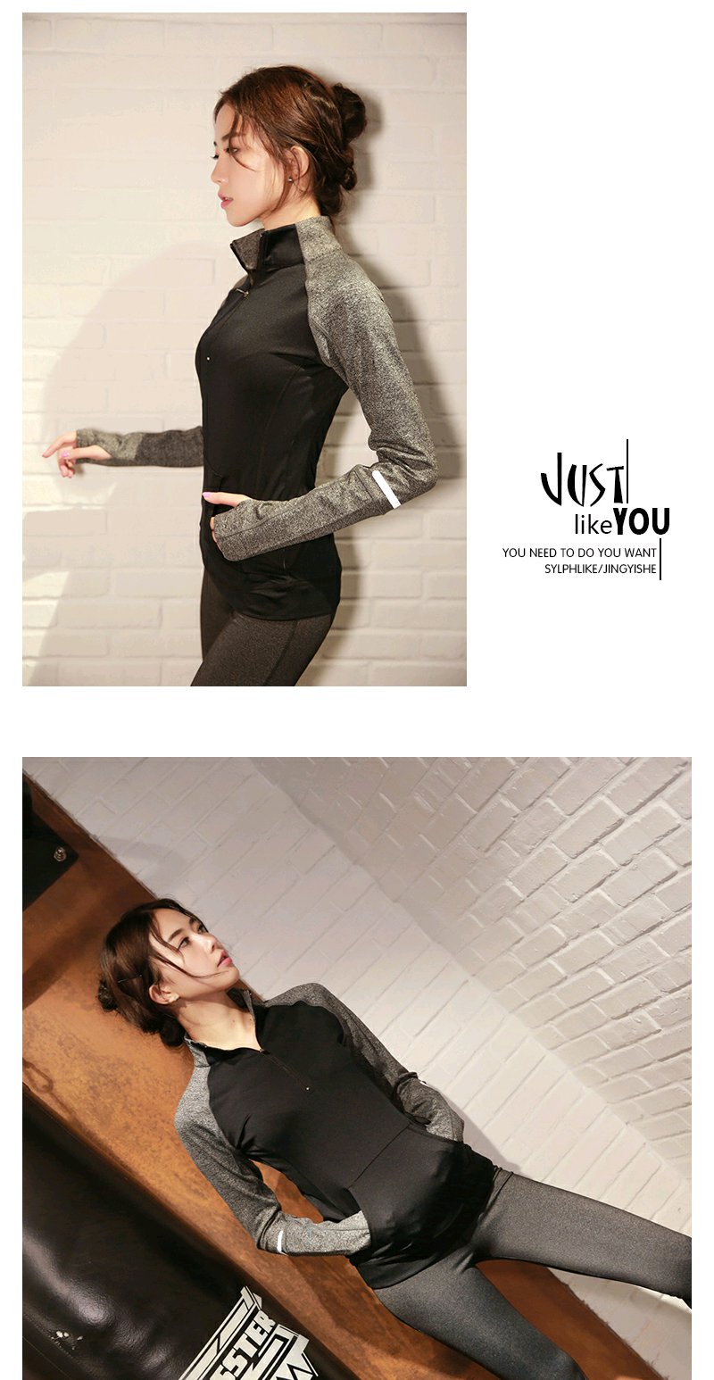 闪塑 新款运动外套女跑步健身立领长袖外套拉链开衫拼色瑜伽服