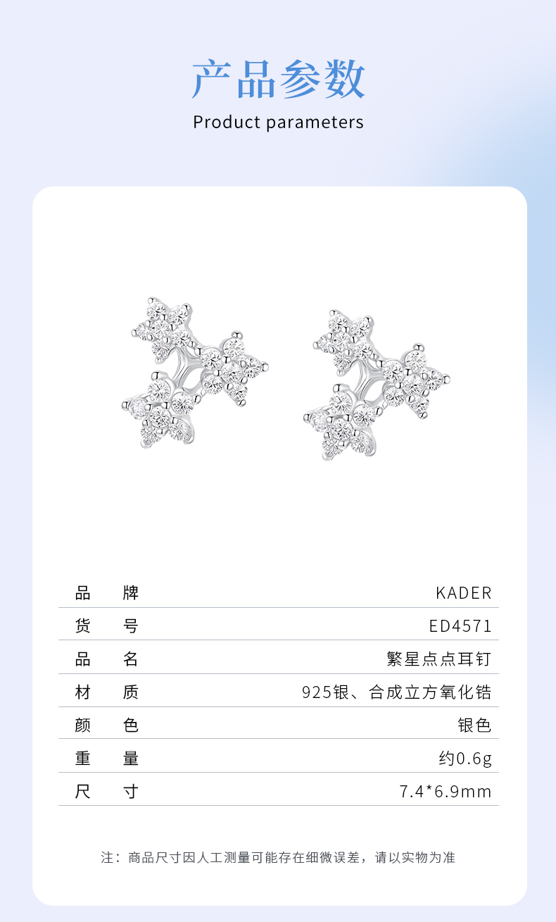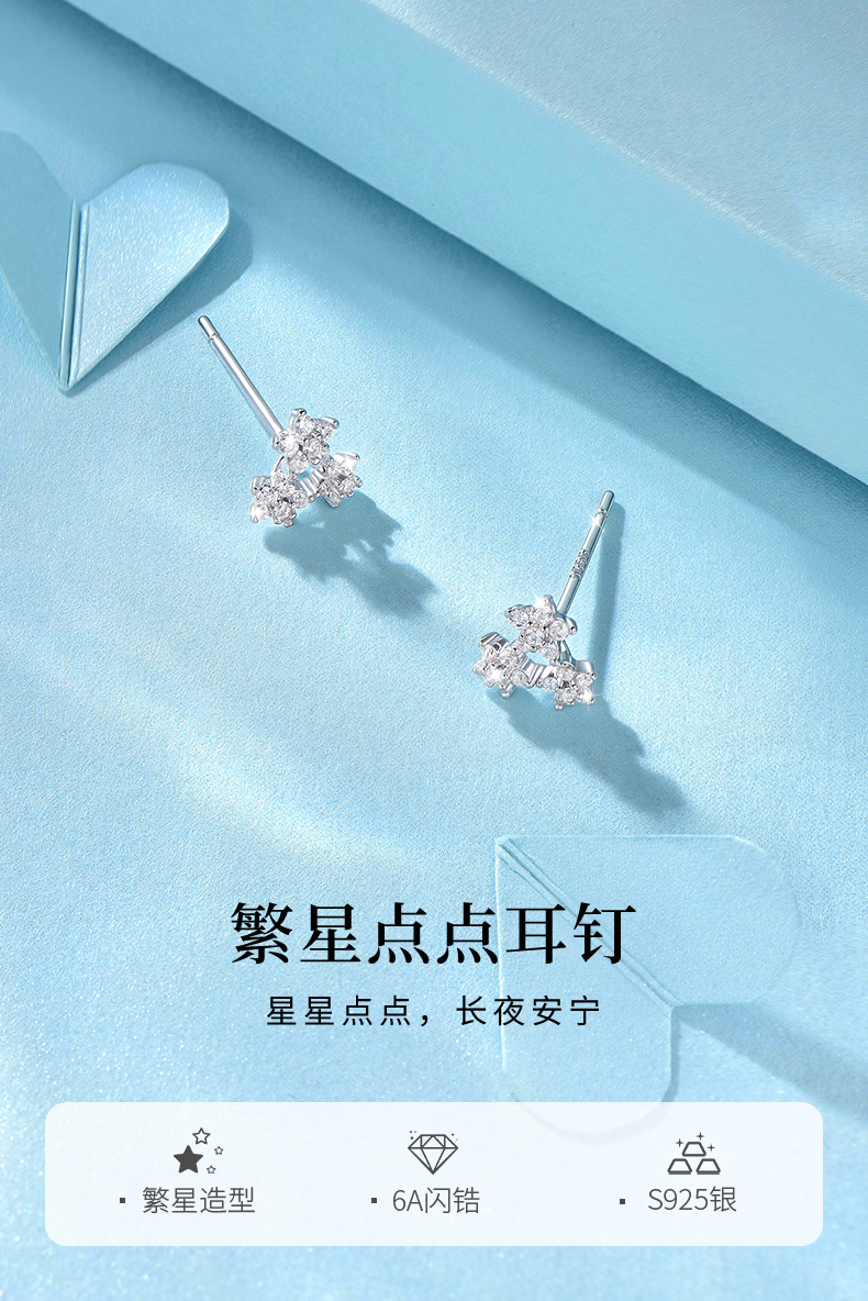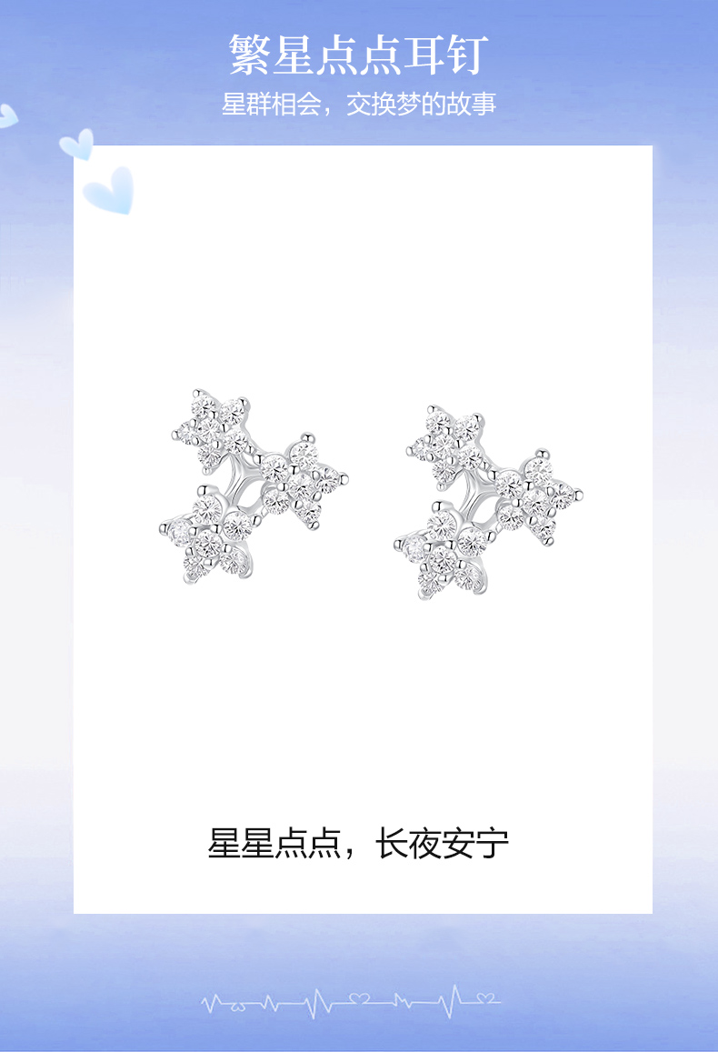 卡蒂罗/KADER 繁星点点 璀璨星群耳钉 闪耀银河梦幻星点养耳洞纯银耳饰 简约时尚通勤百搭春焕新配饰好运Buff