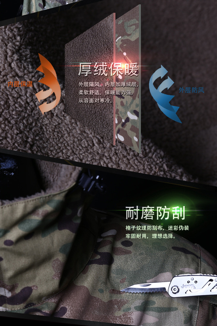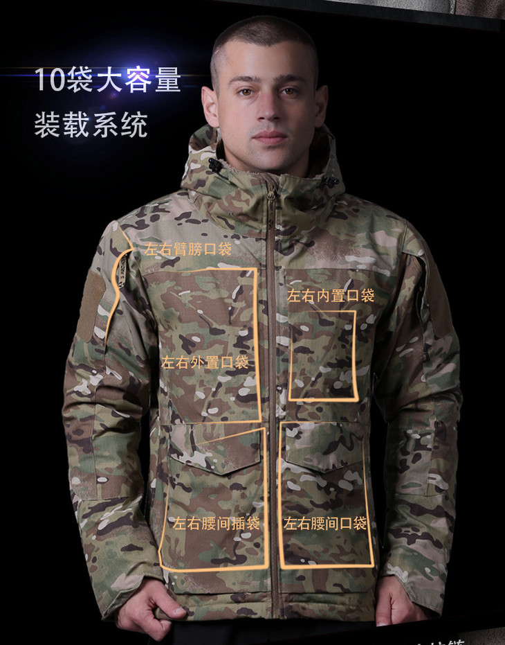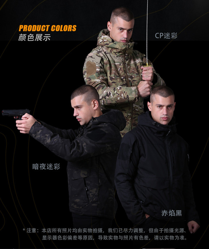 冬季户外冲锋衣男三合一防水风衣加绒加厚保暖迷彩登山服战术外套