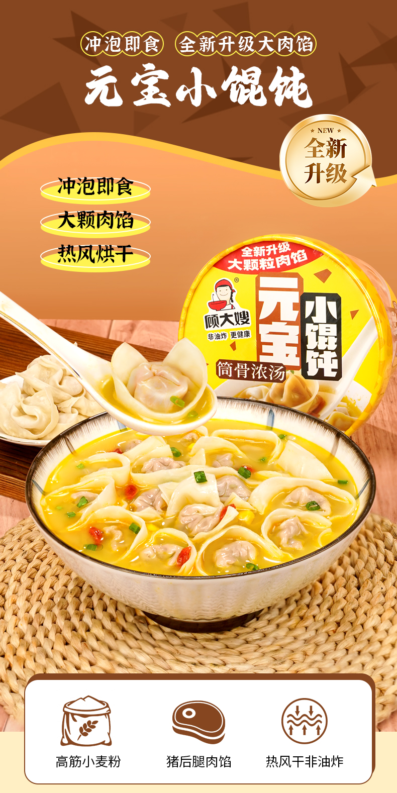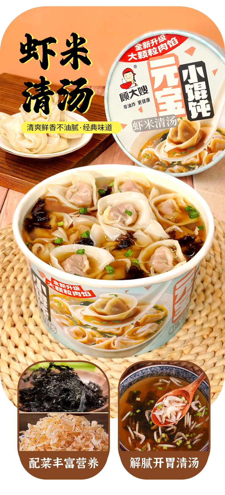 顾大嫂 手工 元宝小馄饨 70g/桶
