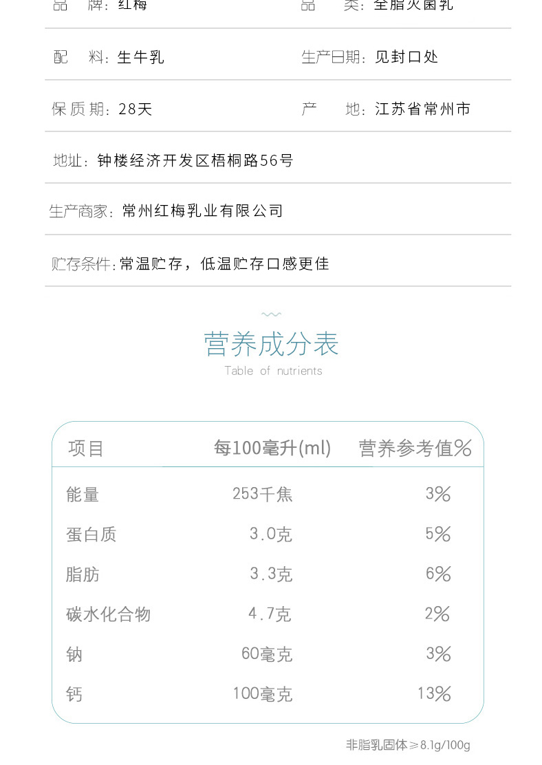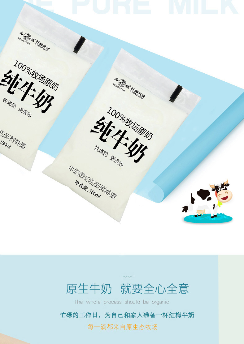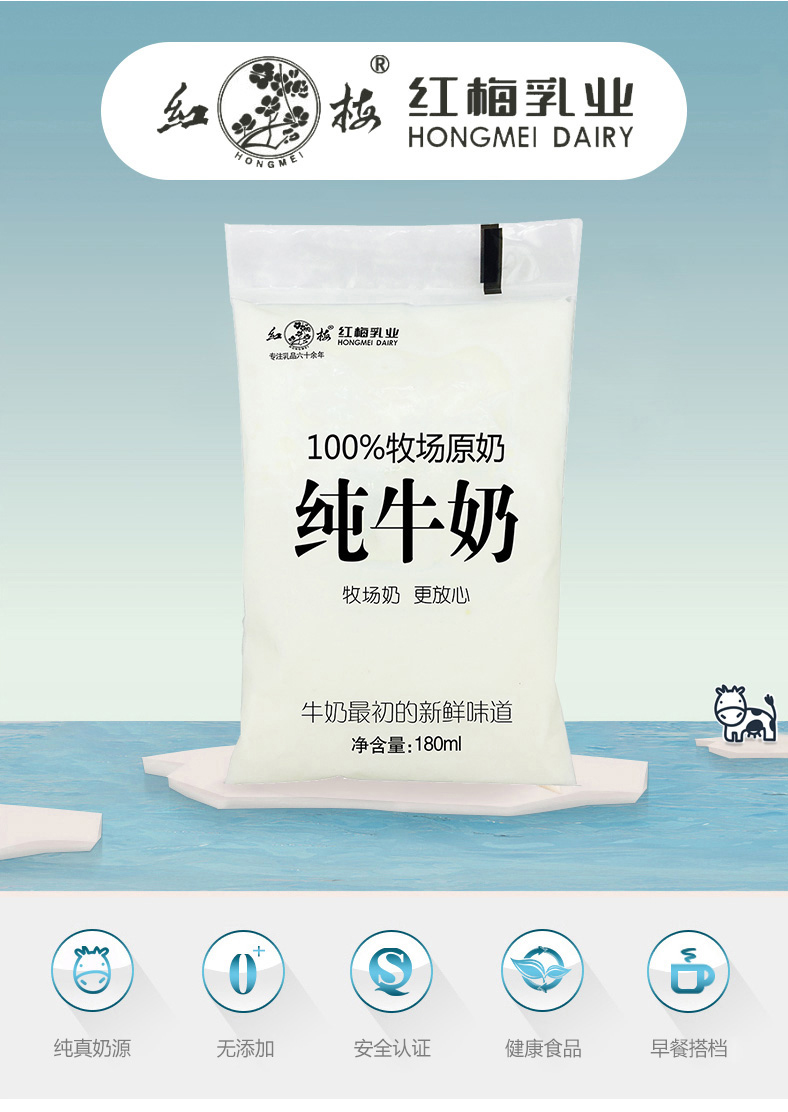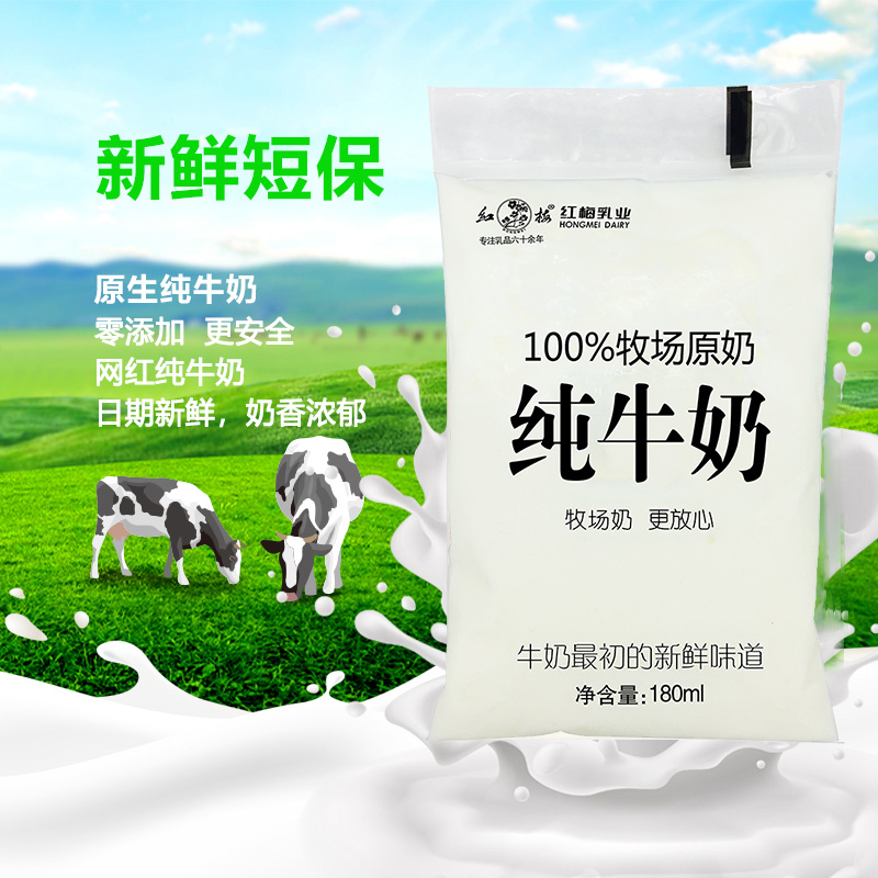 红梅乳业 纯牛奶180ml/袋 16袋/箱