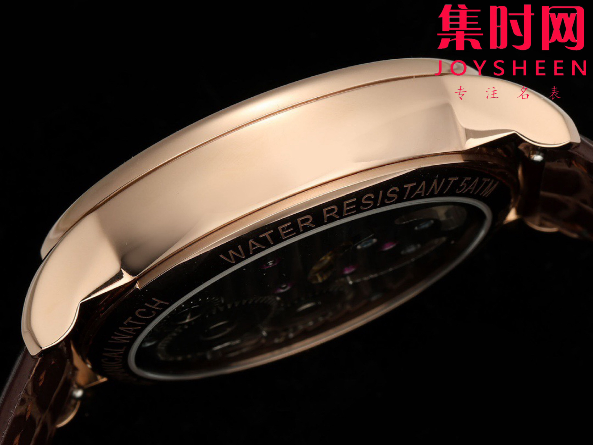 RMS百达翡丽定制改装真陀飞轮系列 男士腕表 搭载高端定制手动陀飞轮机械机芯,是一家始于1839年的瑞士著名钟表品牌,逾百年来,百达翡丽一直信奉精品哲学,遵守重质不重量、细工慢活的生产原则。主旨只有一个,即追求完美。它奉行限量生产,每年的产量只有5万只。在长达一个半多世纪中,百达翡丽出品的表数极为有限,且只在世界顶级名店发售。百达翡丽拥有多项专利,在陀飞轮技术上一直处于领先地位,其手表均在原厂采用手工精制,坚持品质、美丽、可靠的优秀传统,百达翡丽以其强烈的精品意识、精湛的工艺、源源不断的创新缔造了举世推崇的钟表品牌。