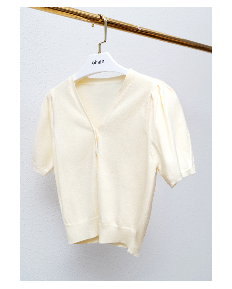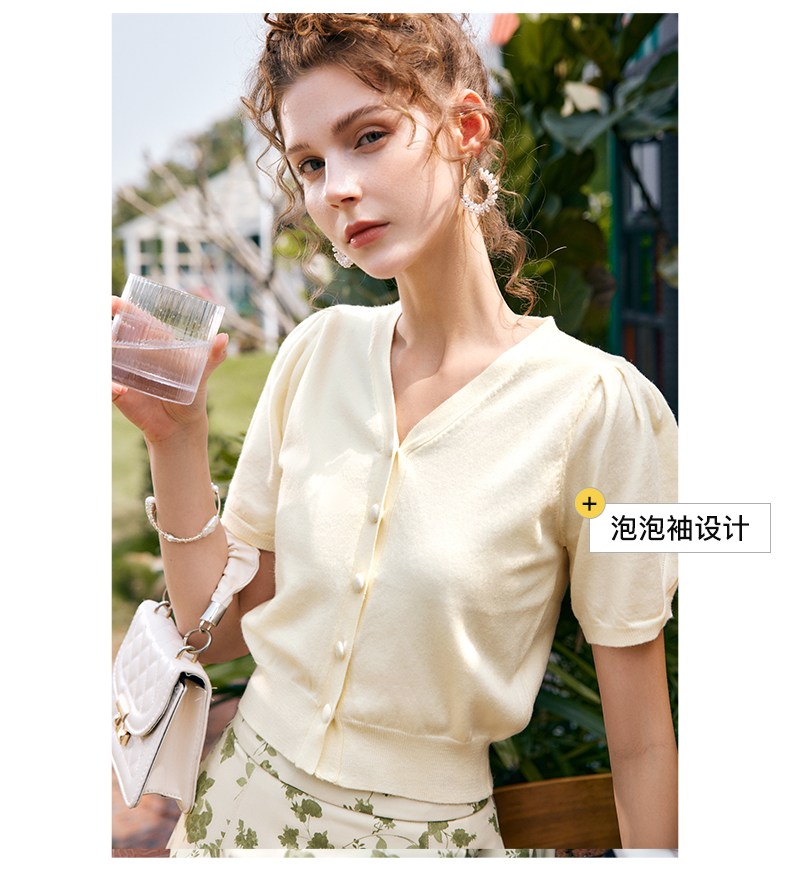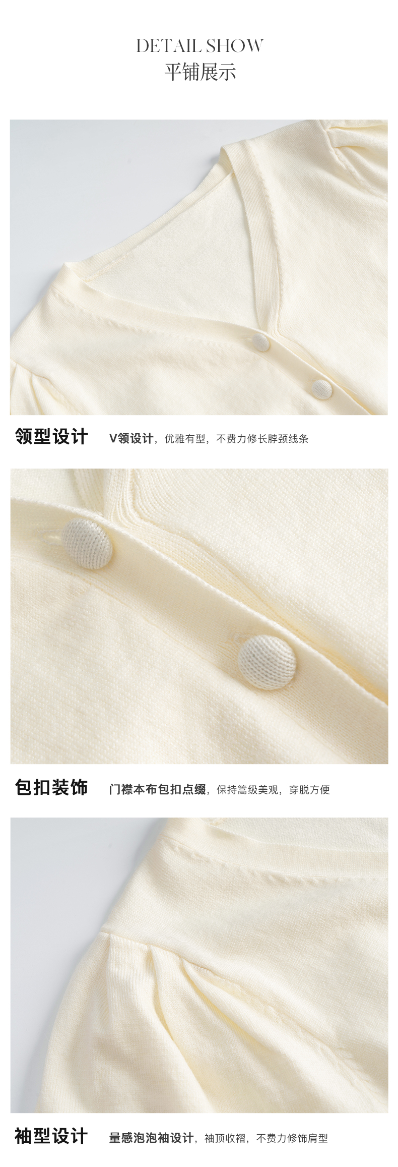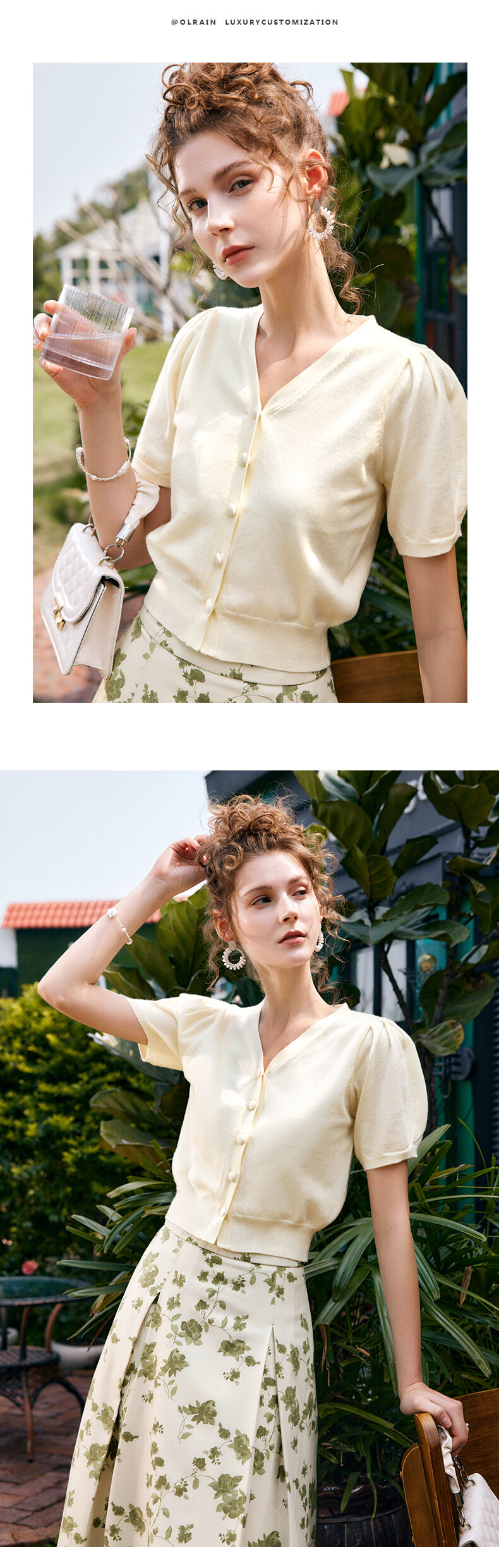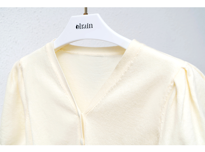 OLrain法式高级穿搭白色针织开衫女夏季2022新款法式V领短款上衣