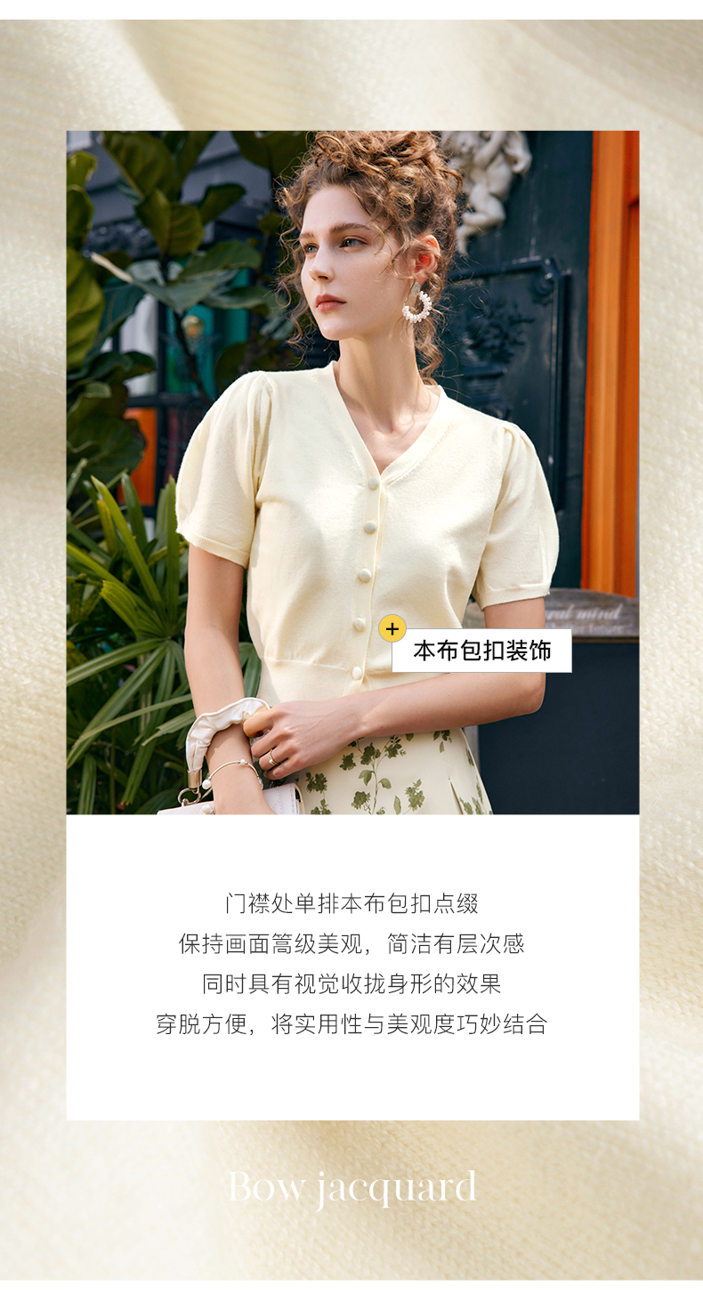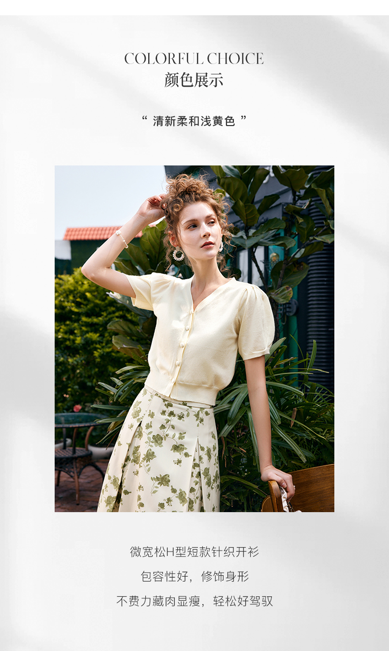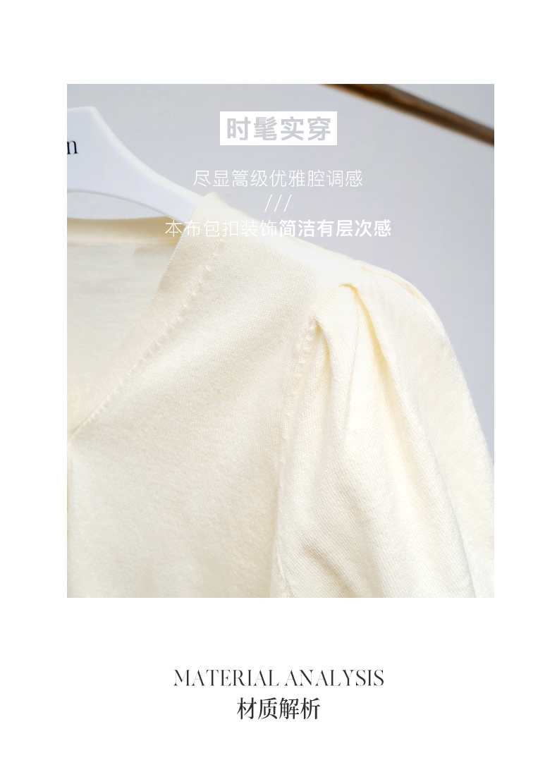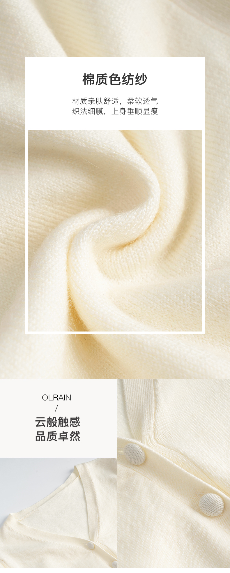 OLrain法式高级穿搭白色针织开衫女夏季2022新款法式V领短款上衣