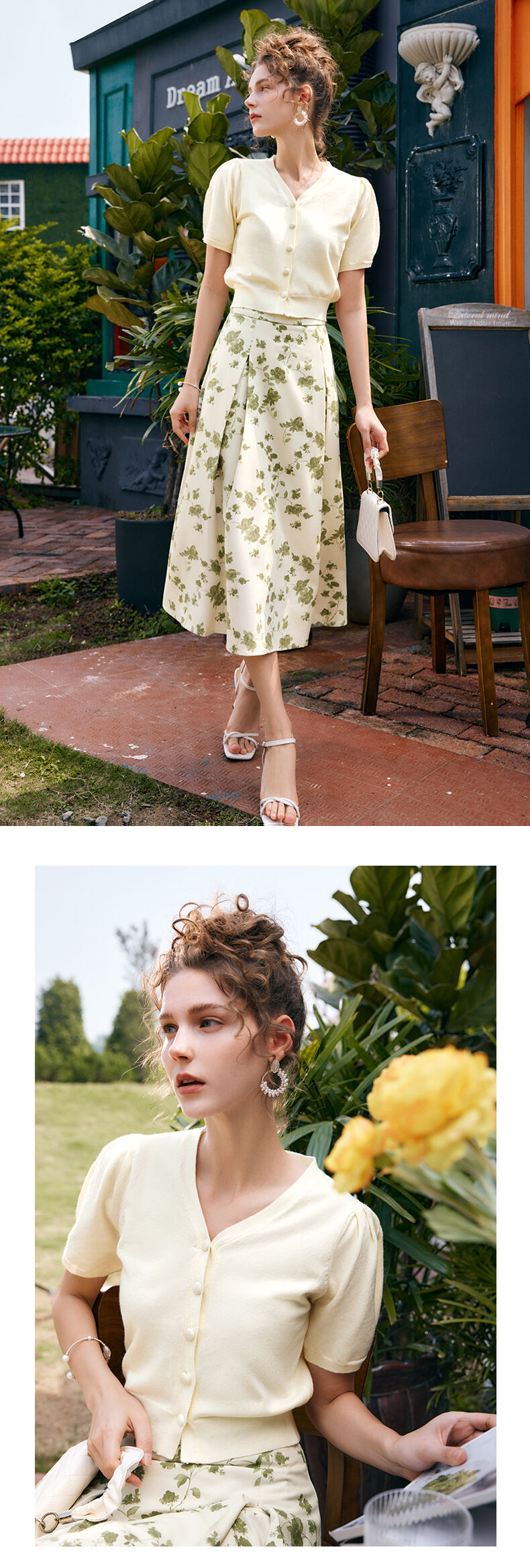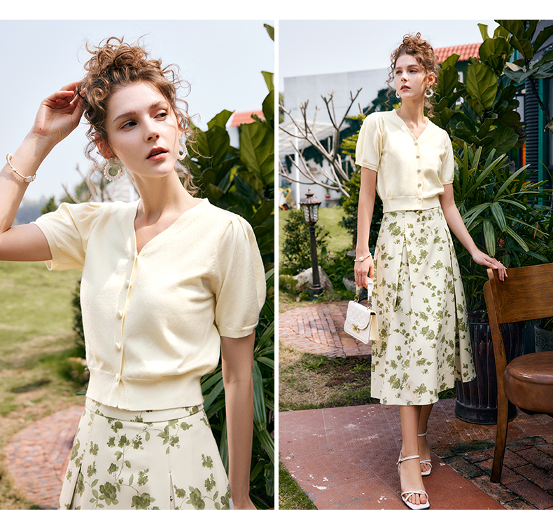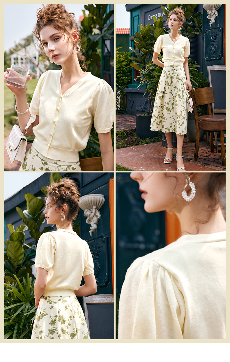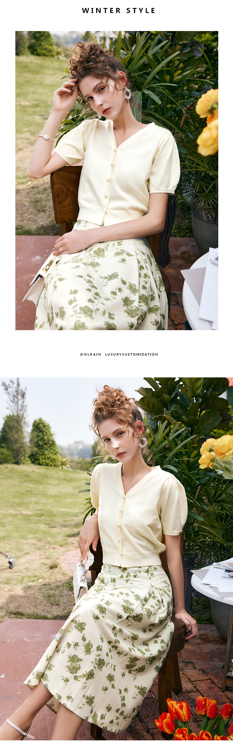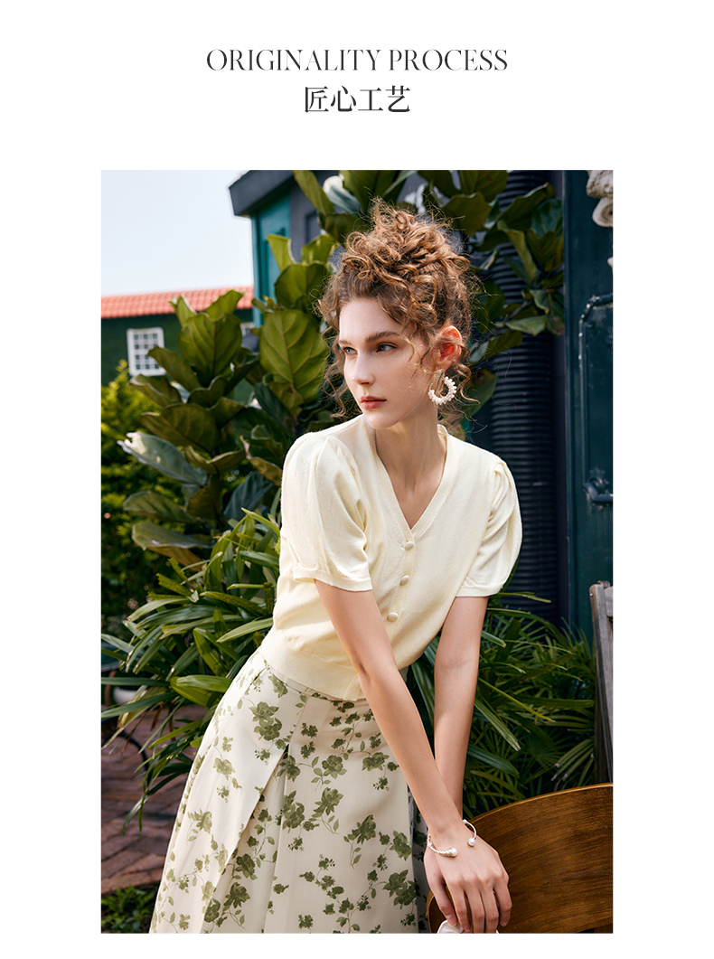 OLrain法式高级穿搭白色针织开衫女夏季2022新款法式V领短款上衣