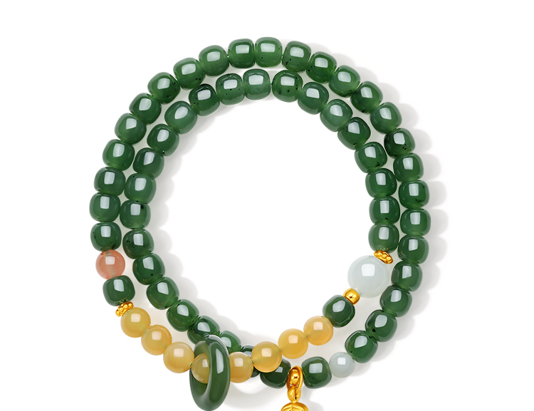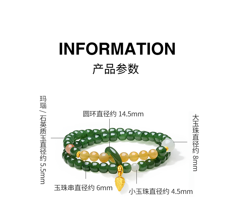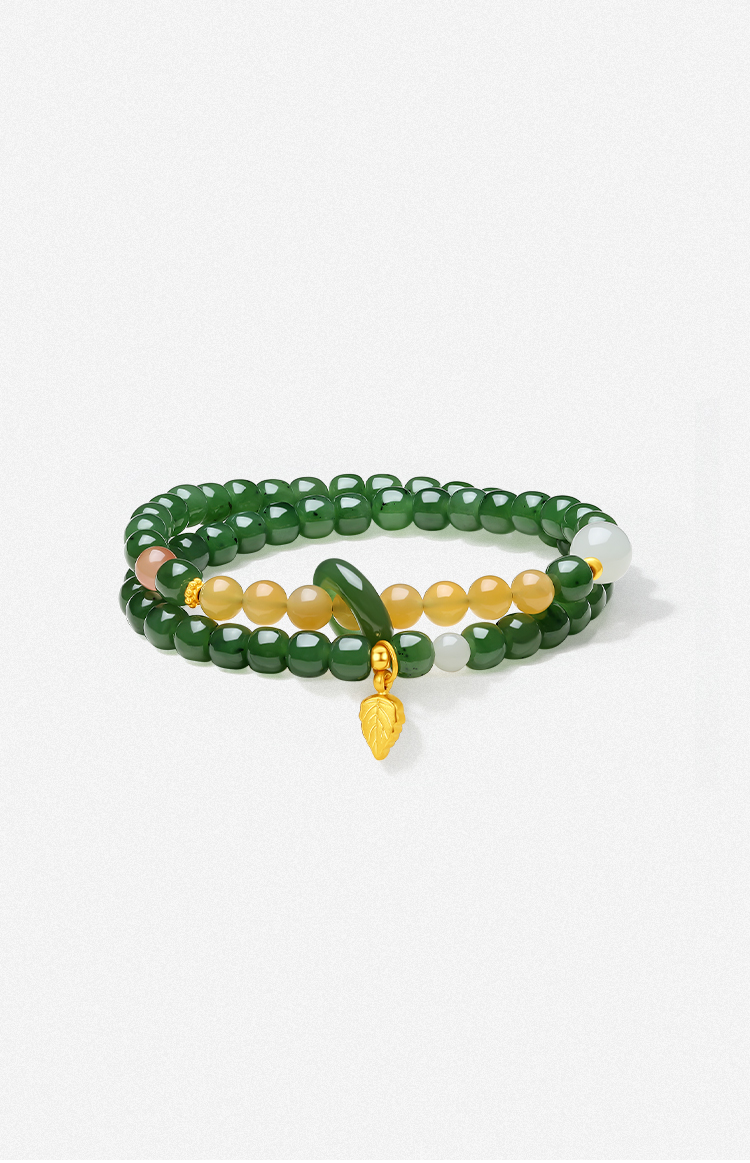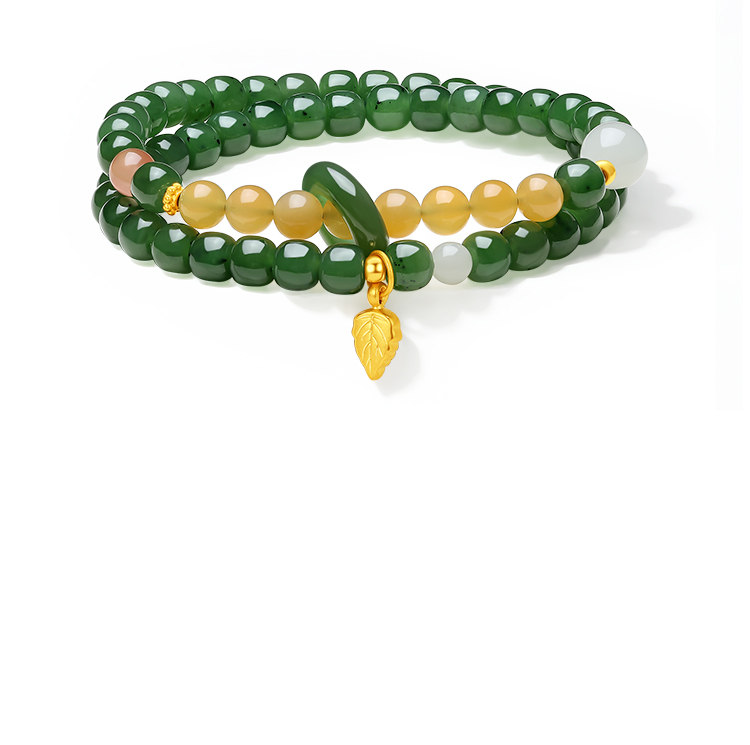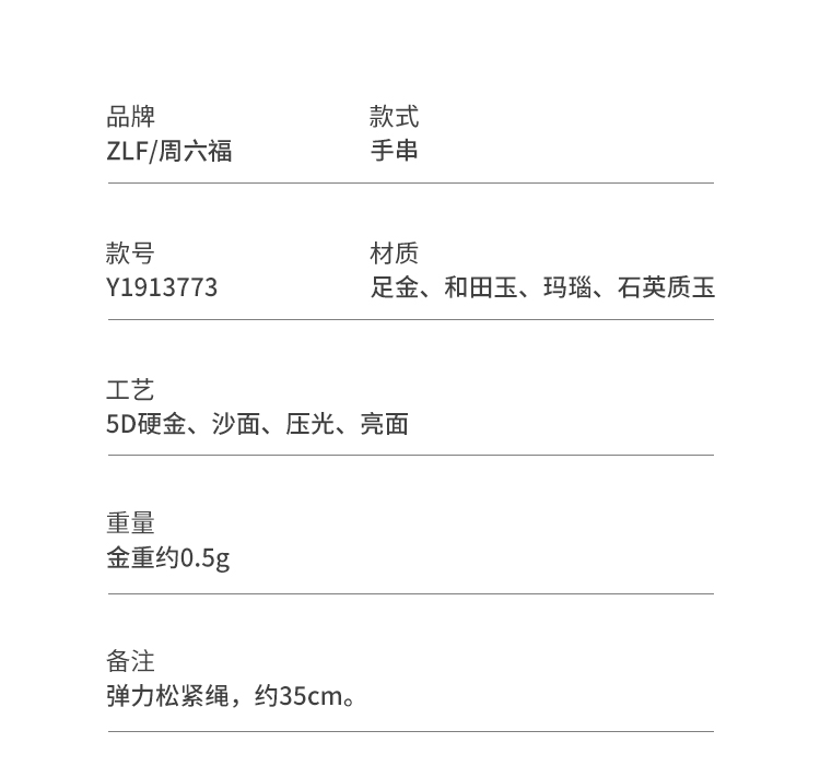 周六福5D硬金金镶玉天然和田碧玉女款手串石英质玉玛瑙送女友礼物