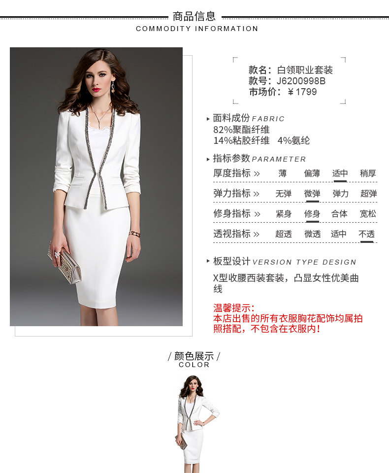 孤品-J6200998B颈袖添香春秋气质女神范白色时尚职业装套装女韩版正装西装套裙J6200998B不退可换