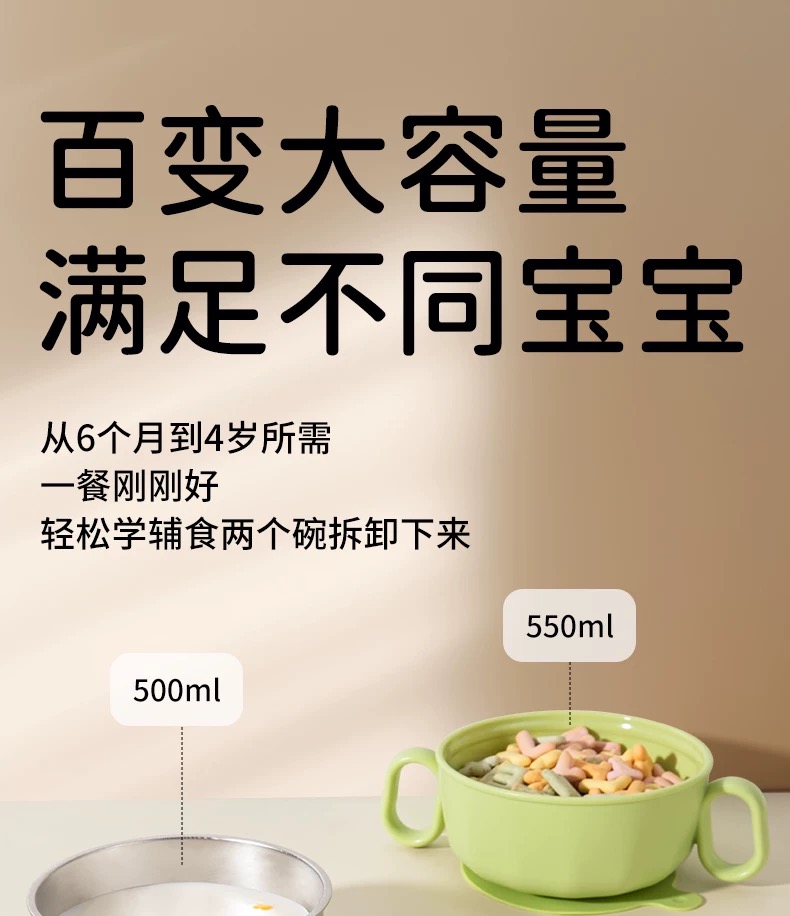beeshum贝斯哈姆婴儿辅食碗宝宝专用儿童学吃饭外出不锈钢可蒸煮