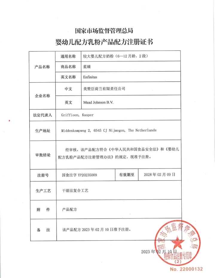美赞臣翡翠蓝臻有机较大婴儿配方奶粉(6-12个月,2段)820克*6罐