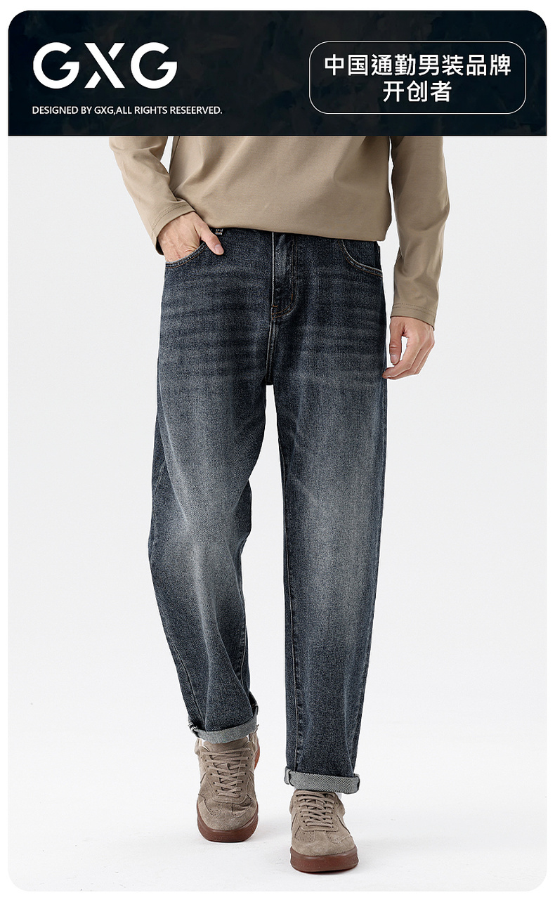 GXG男装25秋季简约纯色基础百搭牛仔裤休闲时尚亲肤男式锥形版裤K&C