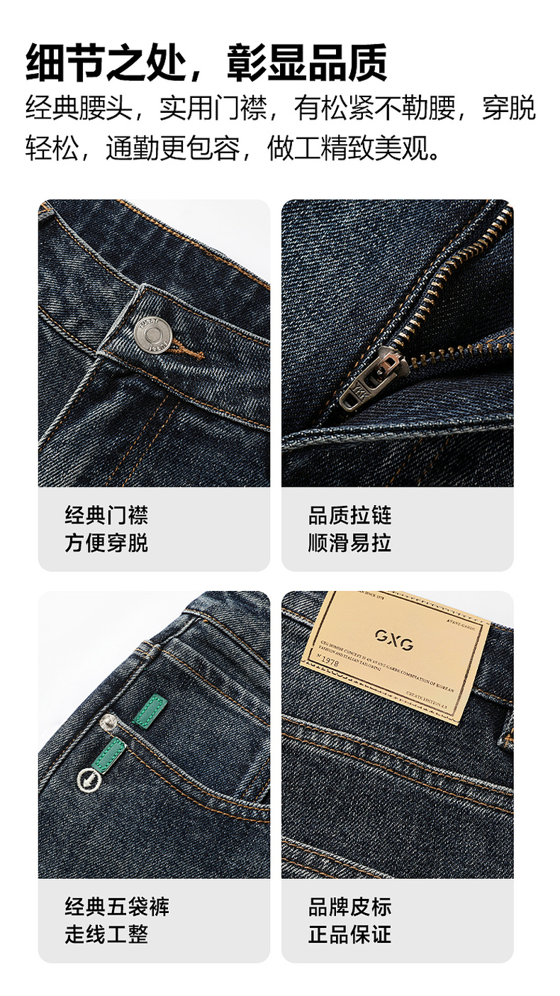 GXG男装 复古经典黑色修身耐磨四面弹力直筒牛仔裤 2025秋季新品