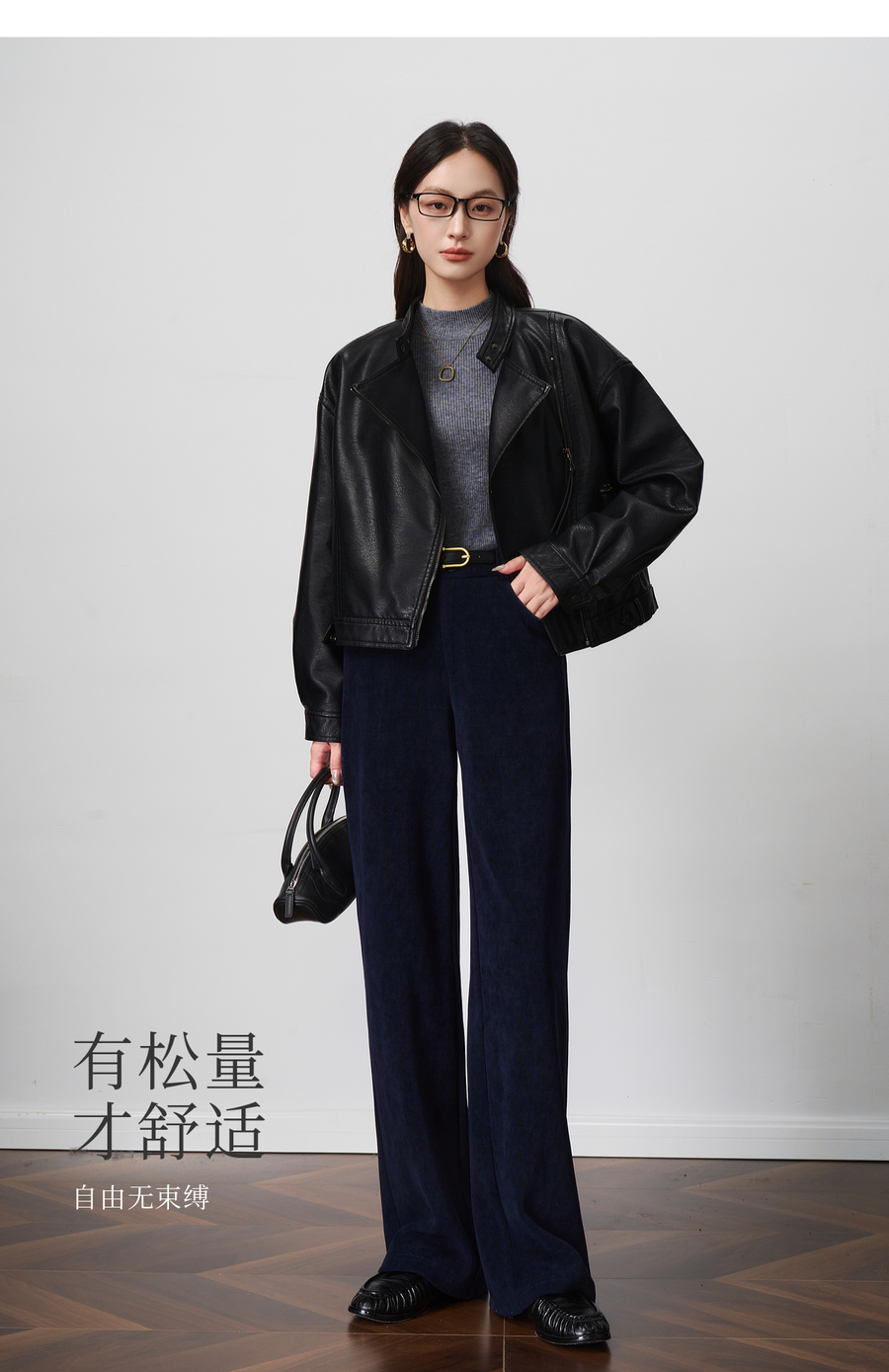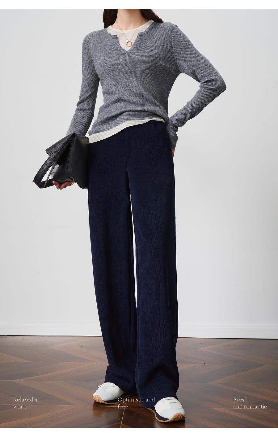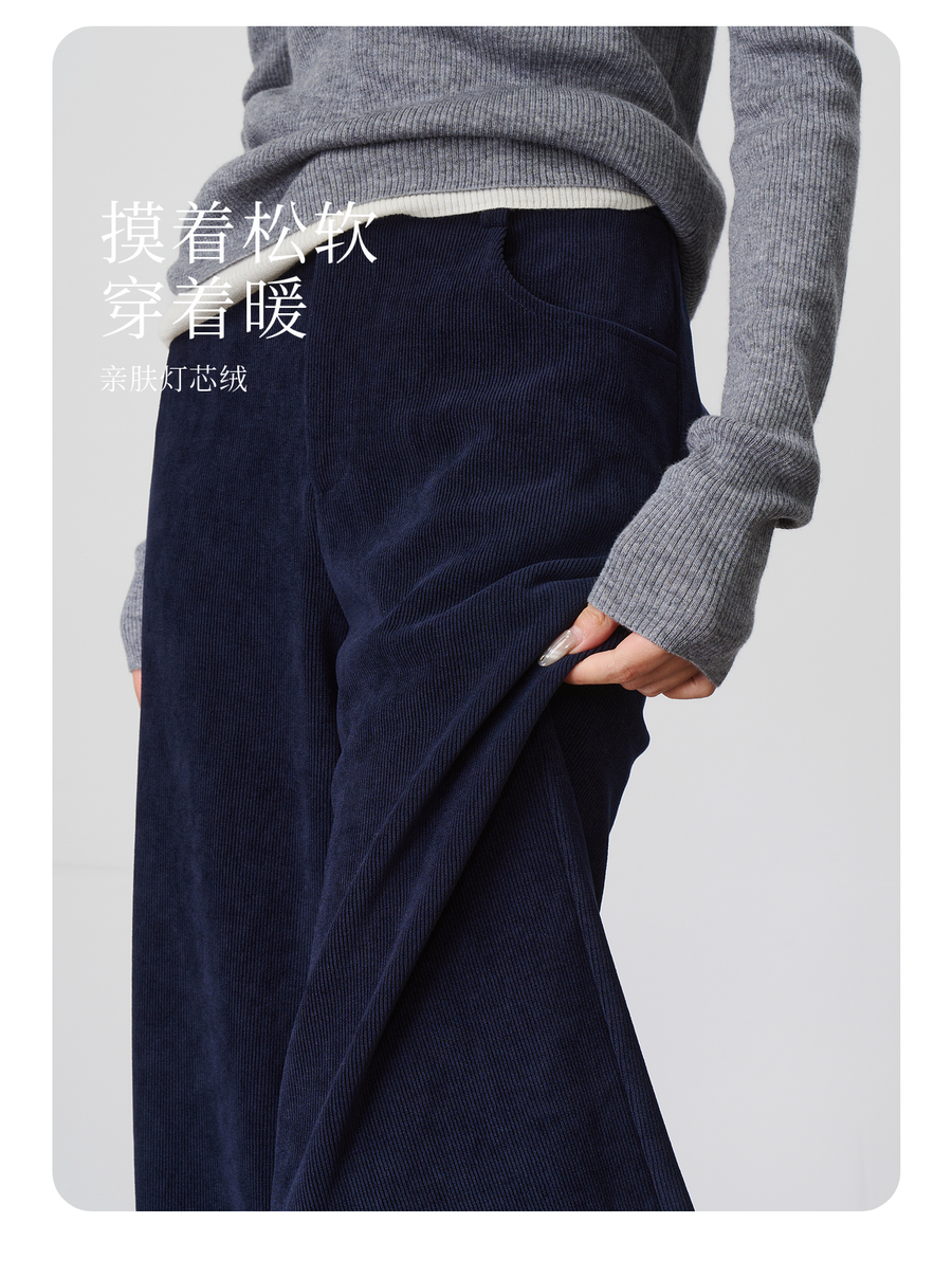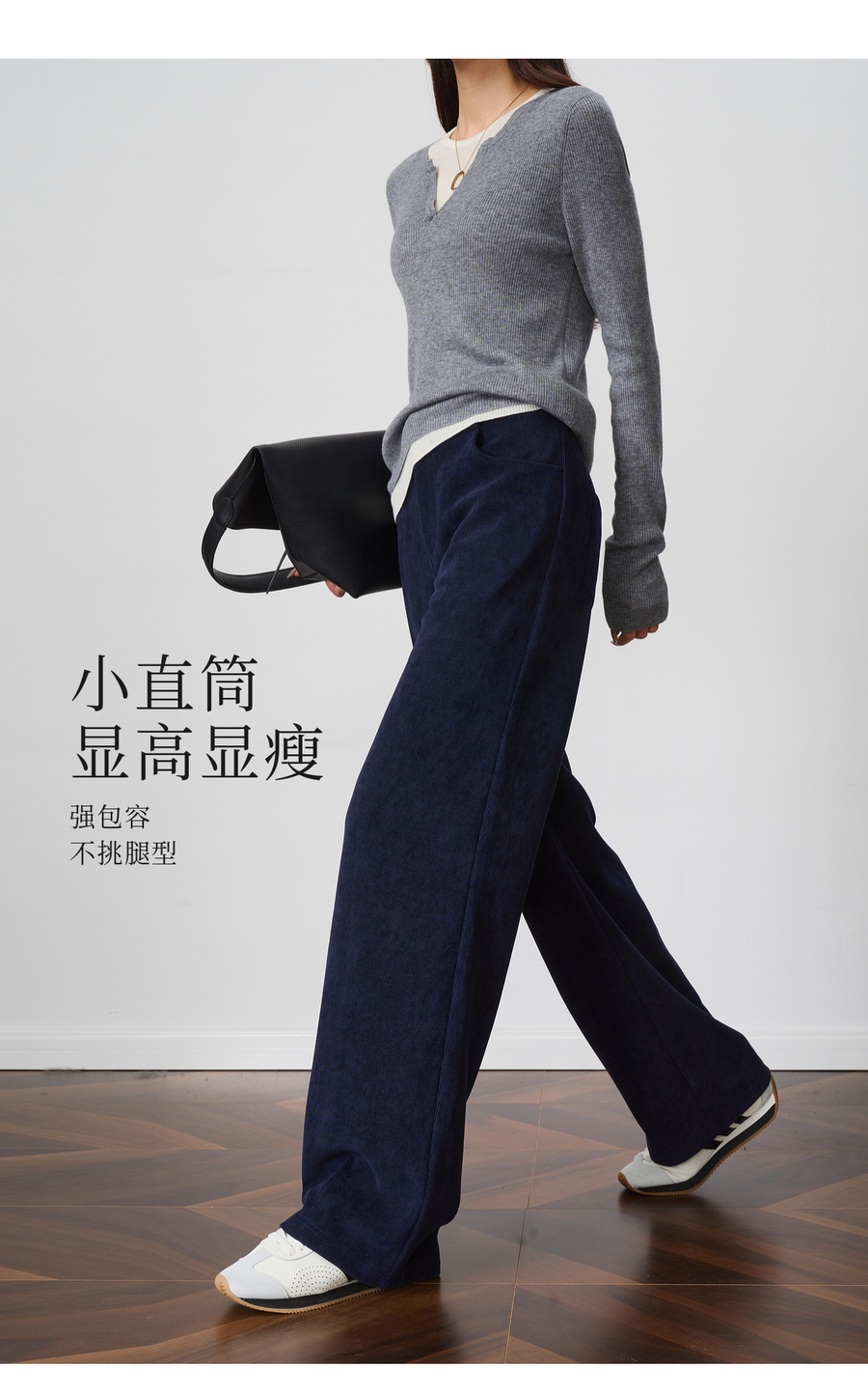 OLrain欧芮儿灯芯绒微弹休闲直筒长裤女秋季2025新款垂感显瘦裤子