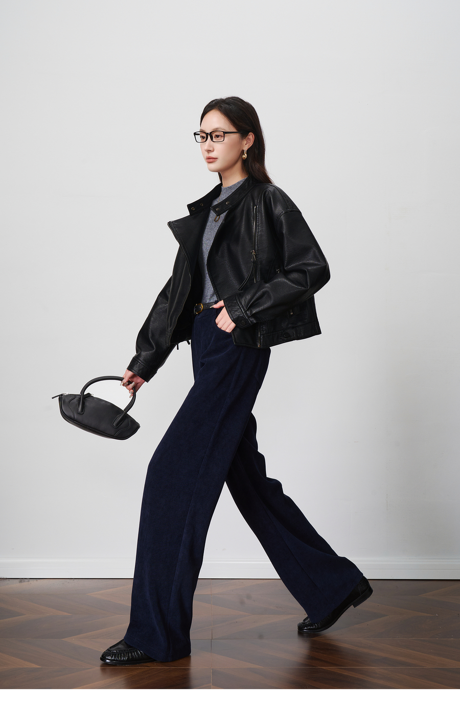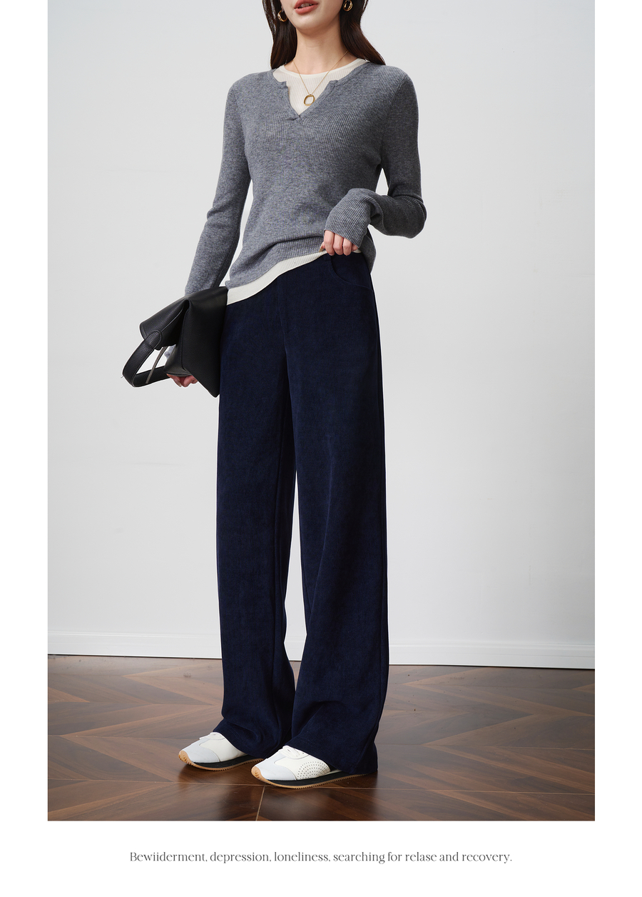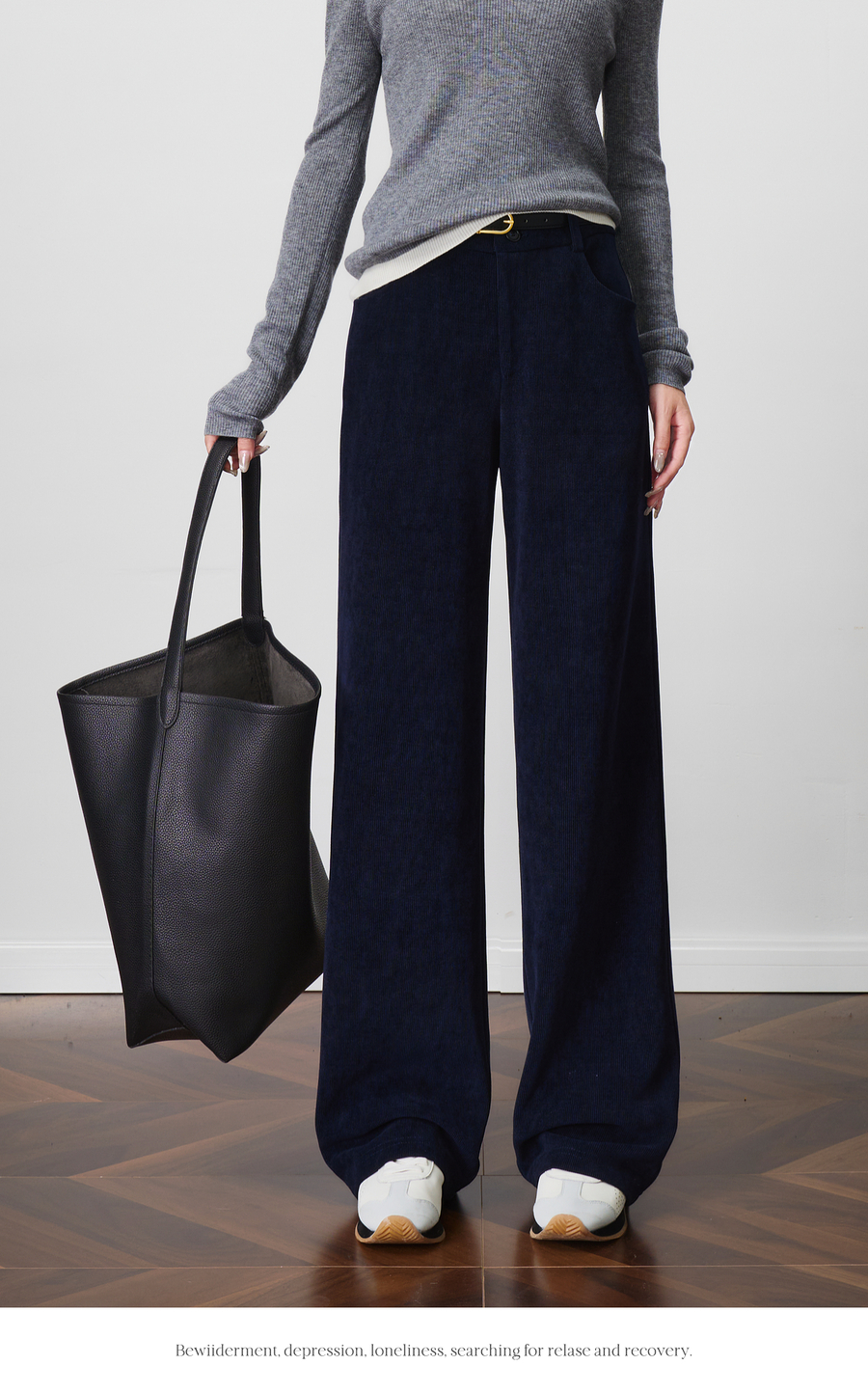 OLrain欧芮儿灯芯绒微弹休闲直筒长裤女秋季2025新款垂感显瘦裤子