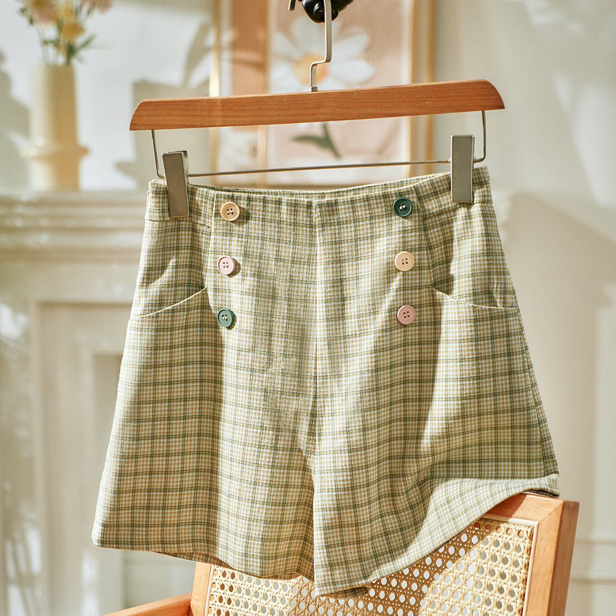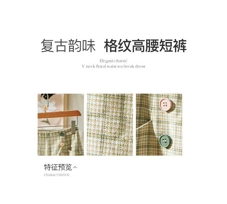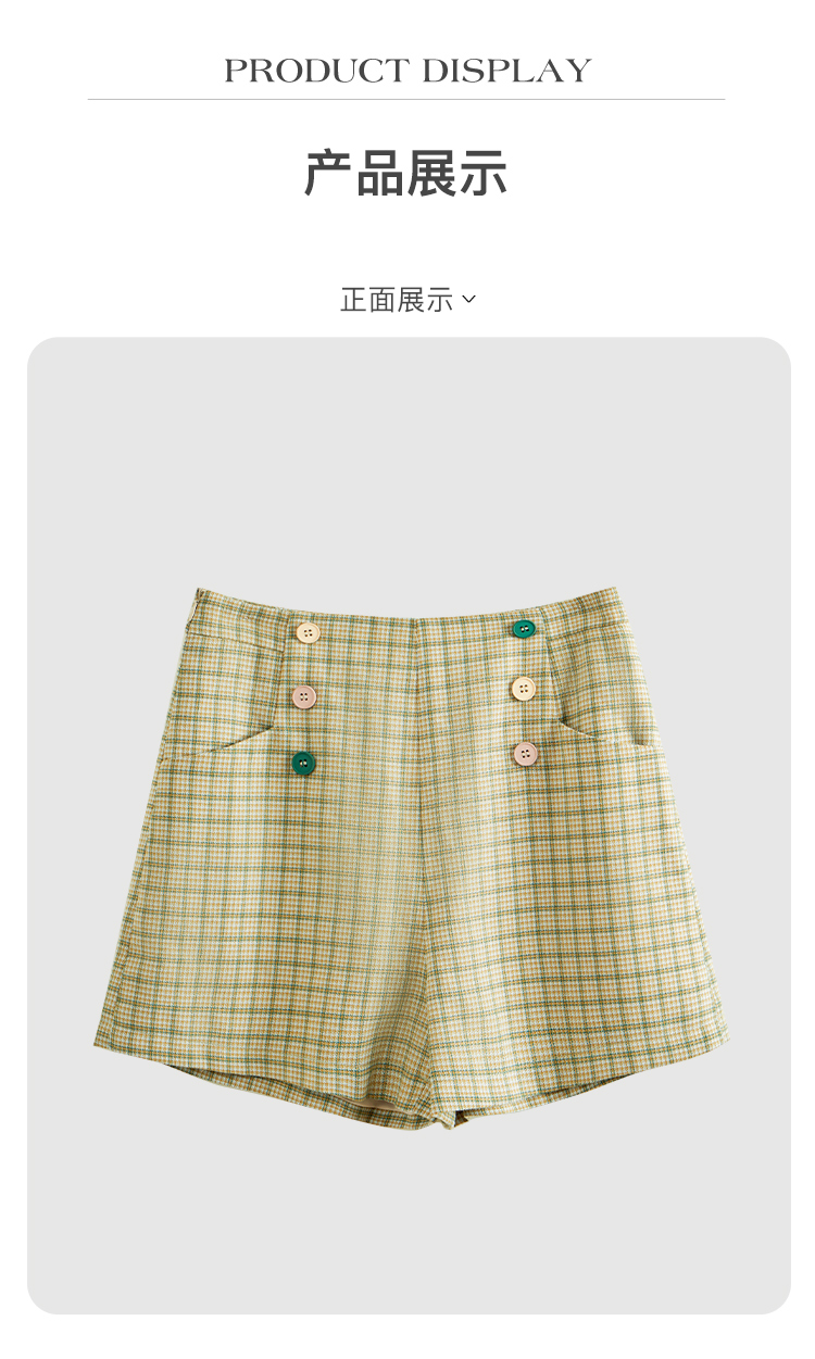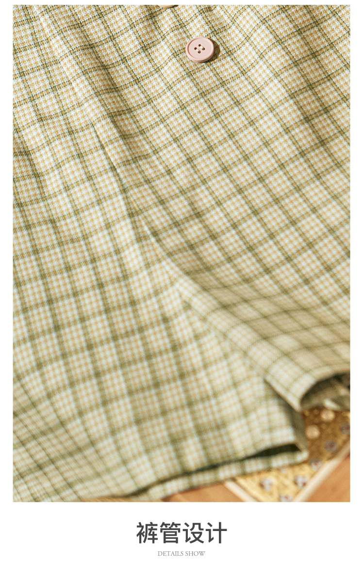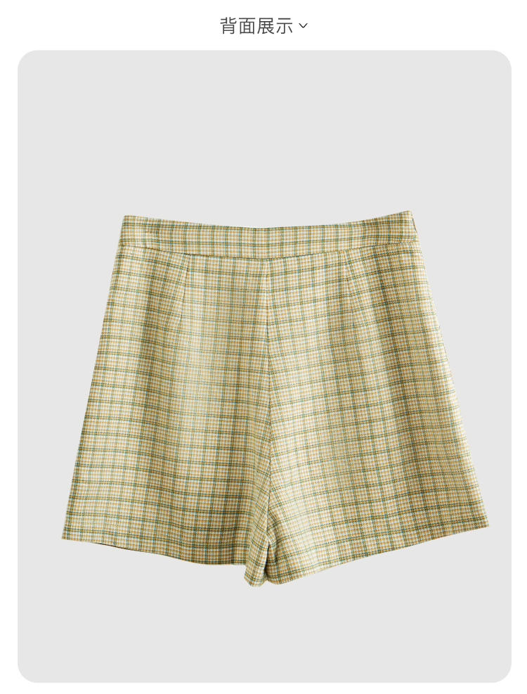 欧芮儿春新款高腰休闲格子短裤女修身显瘦宽松百搭阔腿裤