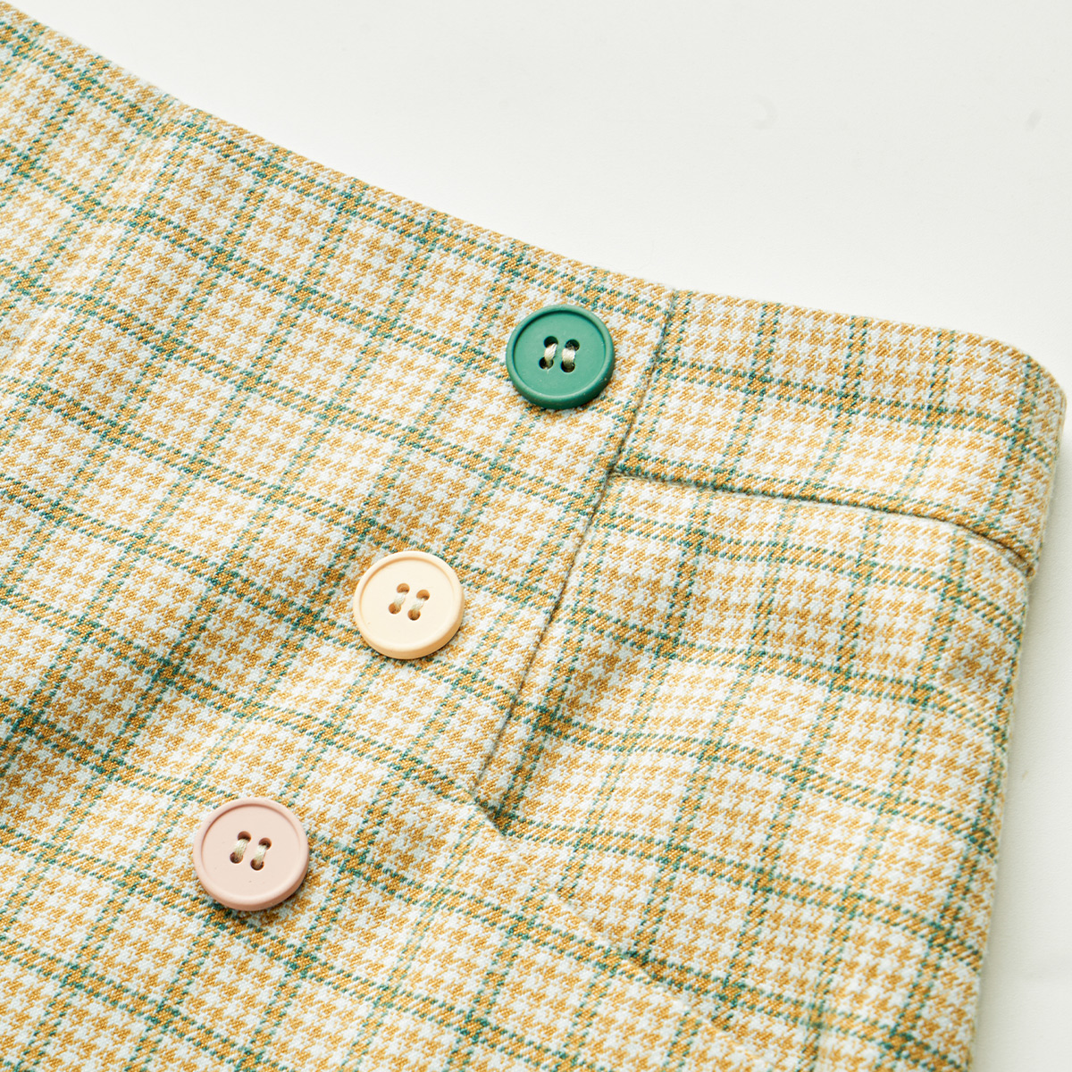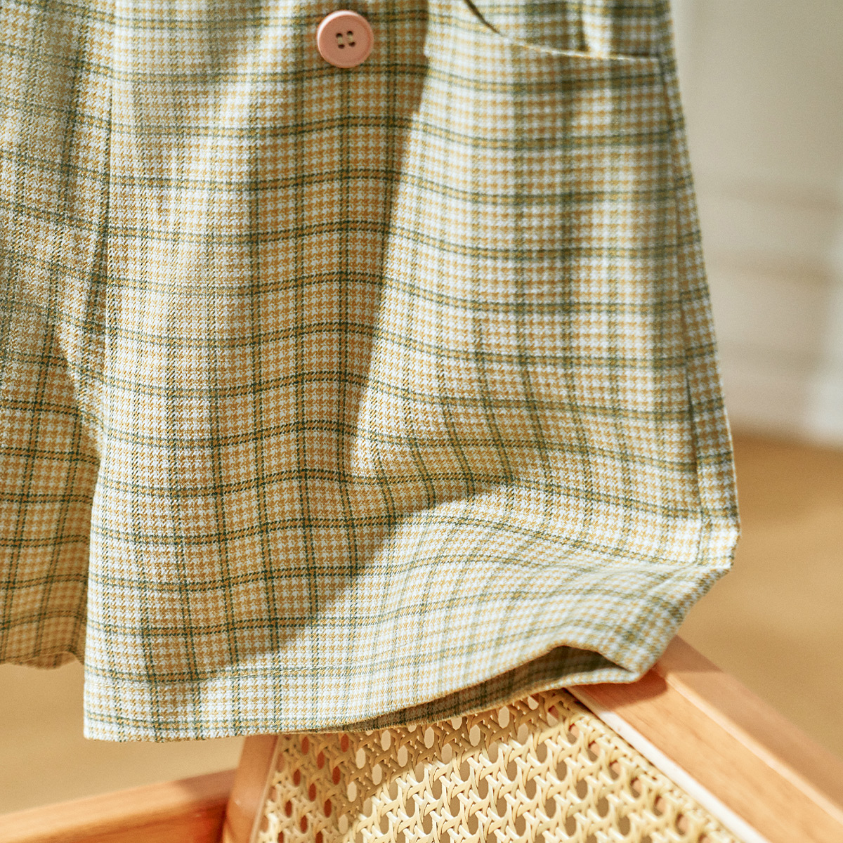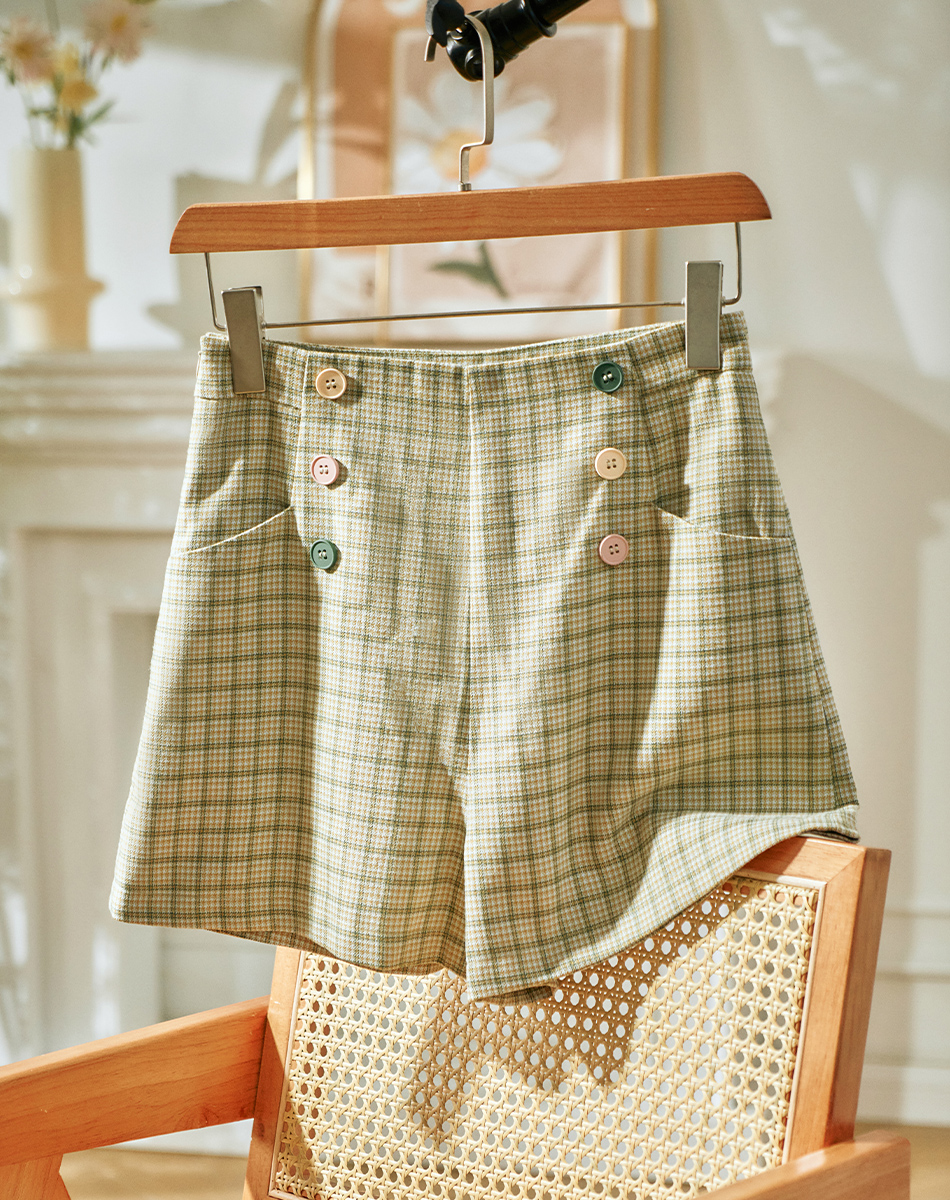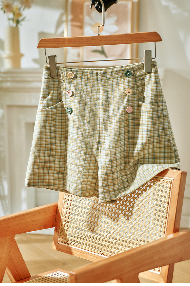 欧芮儿春新款高腰休闲格子短裤女修身显瘦宽松百搭阔腿裤